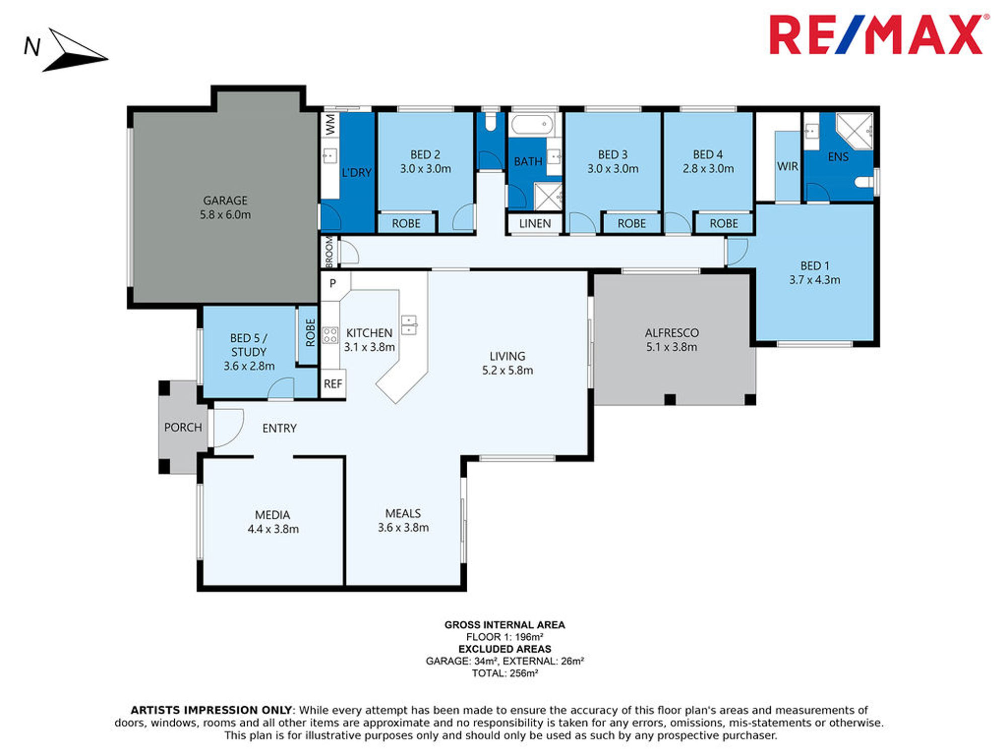 The living areas of the home include a media/lounge room and, central to the home, a spacious open-plan kitchen-dining-living space, with a large, modern kitchen offering ample cupboard storage, a large fridge space, high quality appliances, and stone benchtop and breakfast bar. The living room opens on to the outdoor entertaining and recreational area via the covered deck adjacent to the pool zone.