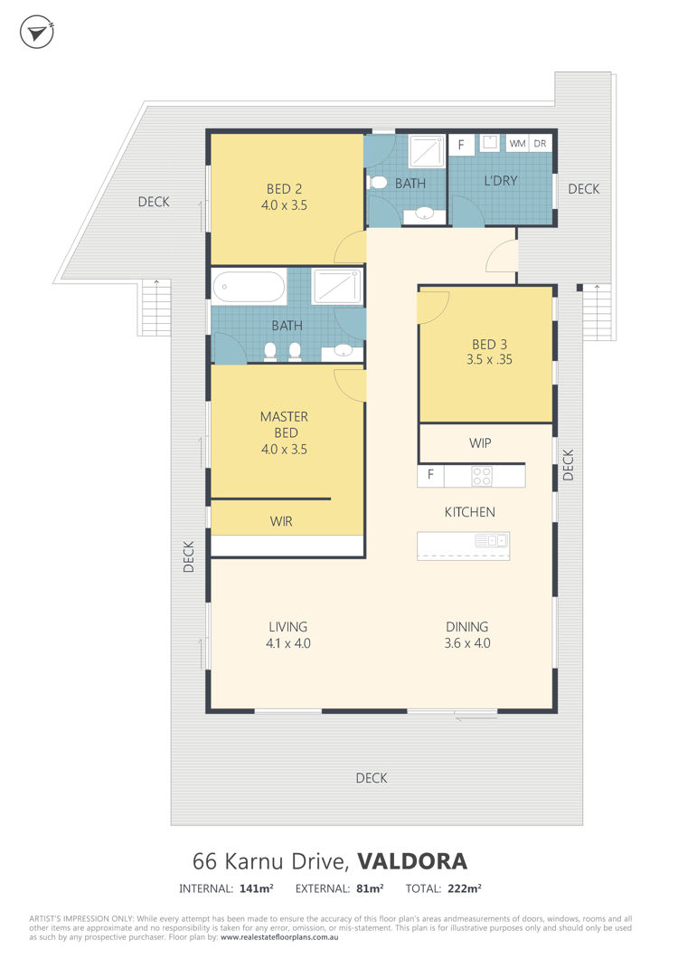 Highset with storage/workshop under; the home comprises three bedrooms, two luxury two-way bathrooms, open plan living, galley kitchen with walk-in pantry, wraparound timber decking across entire four sides, separate laundry, and single carport plus onsite parking for four additional vehicles.