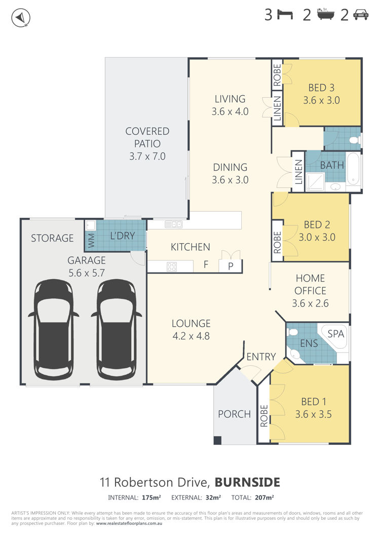 Across a single light-filled level, the home comprises three bedrooms plus office, two bathrooms, two separate living areas, central galley kitchen, covered east facing patio, separate laundry, and double lock up garage, on a 620m2 block with a fully fenced child and pet-friendly flat backyard with room for a pool.