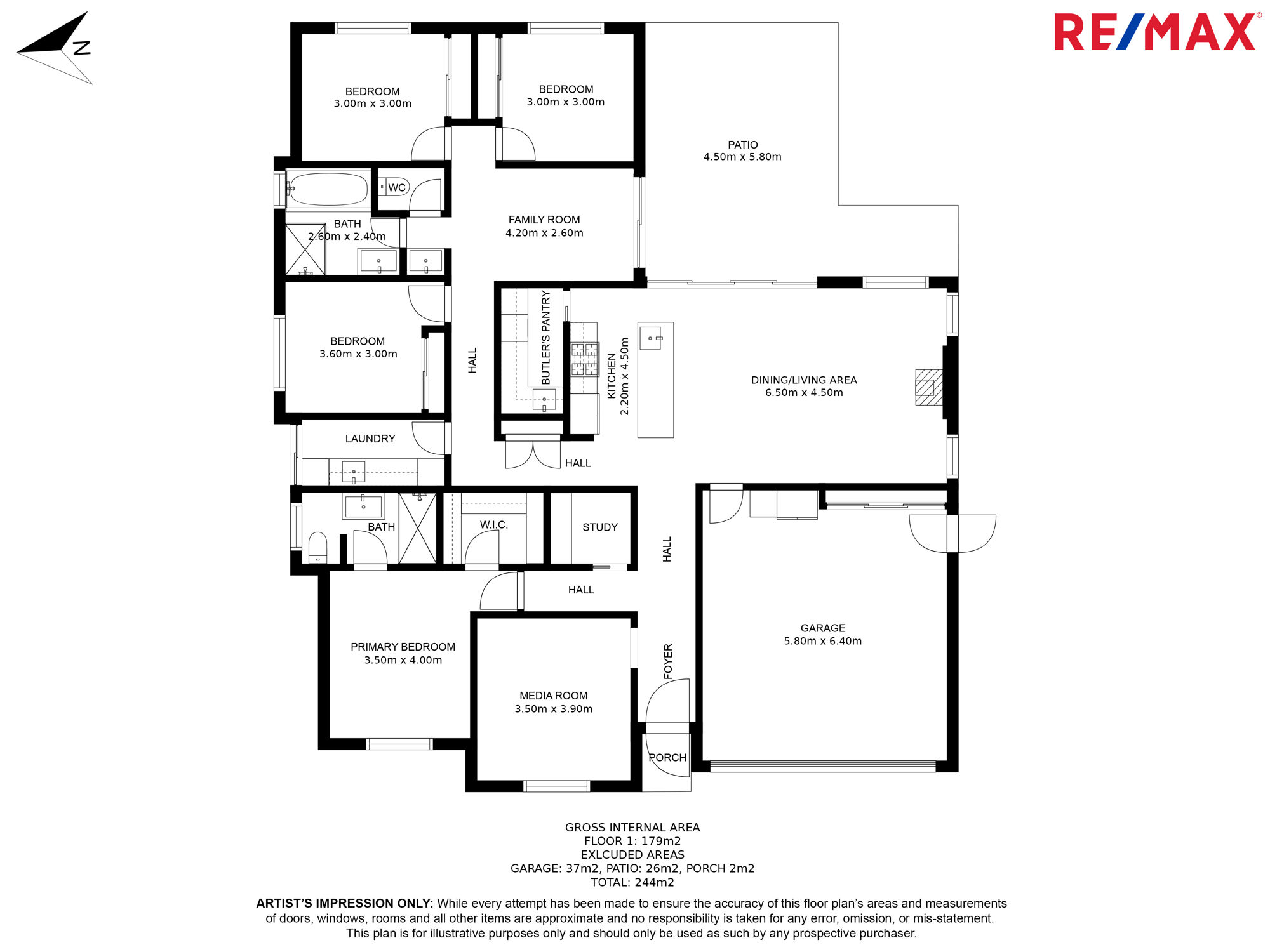 4 generous bedrooms are located throughout the house, the master at the front of the home giving excellent privacy and separation from the remaining 3 queen-sized bedrooms. The beautiful ensuite is decorated with floor-to-ceiling tiles while the main bathroom entry has a separate toilet and sink.