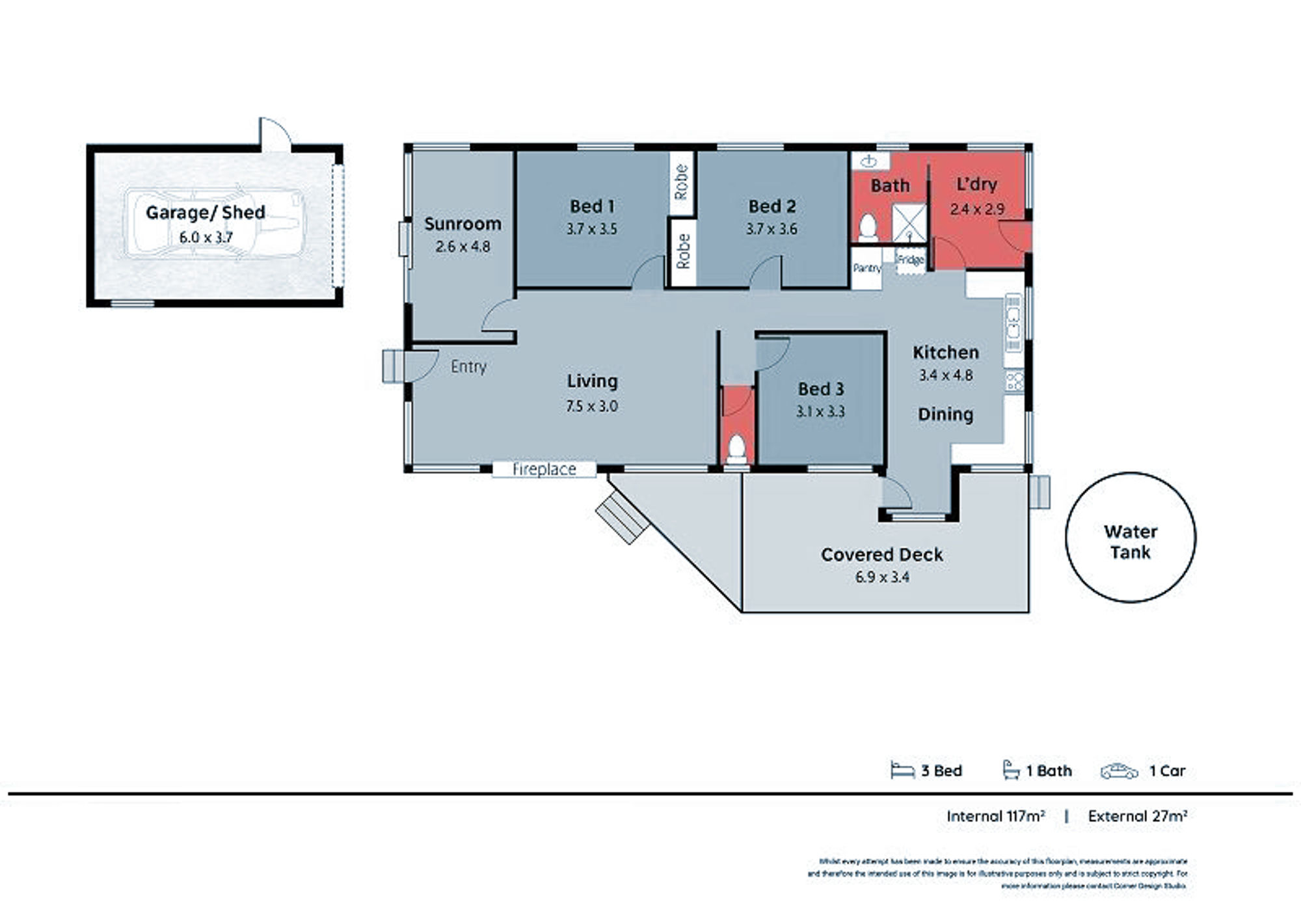 The property has a 22,000L rainwater tank and has a traditional septic system.