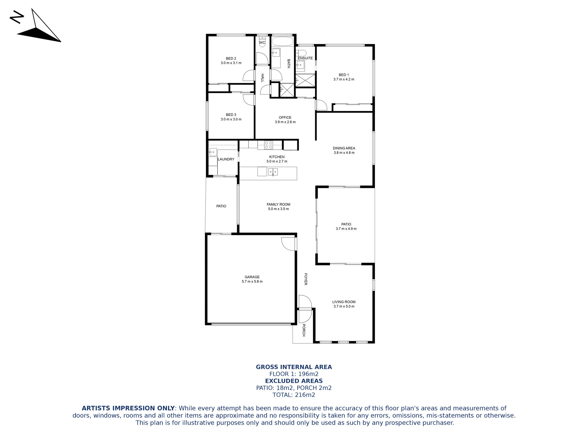 Across a single, light-filled level covering approximately 217m2 - the home comprises three bedrooms, two bathrooms, office, two living areas, quality kitchen with butler's pantry/laundry combo, two separate patios, and double lock up garage.