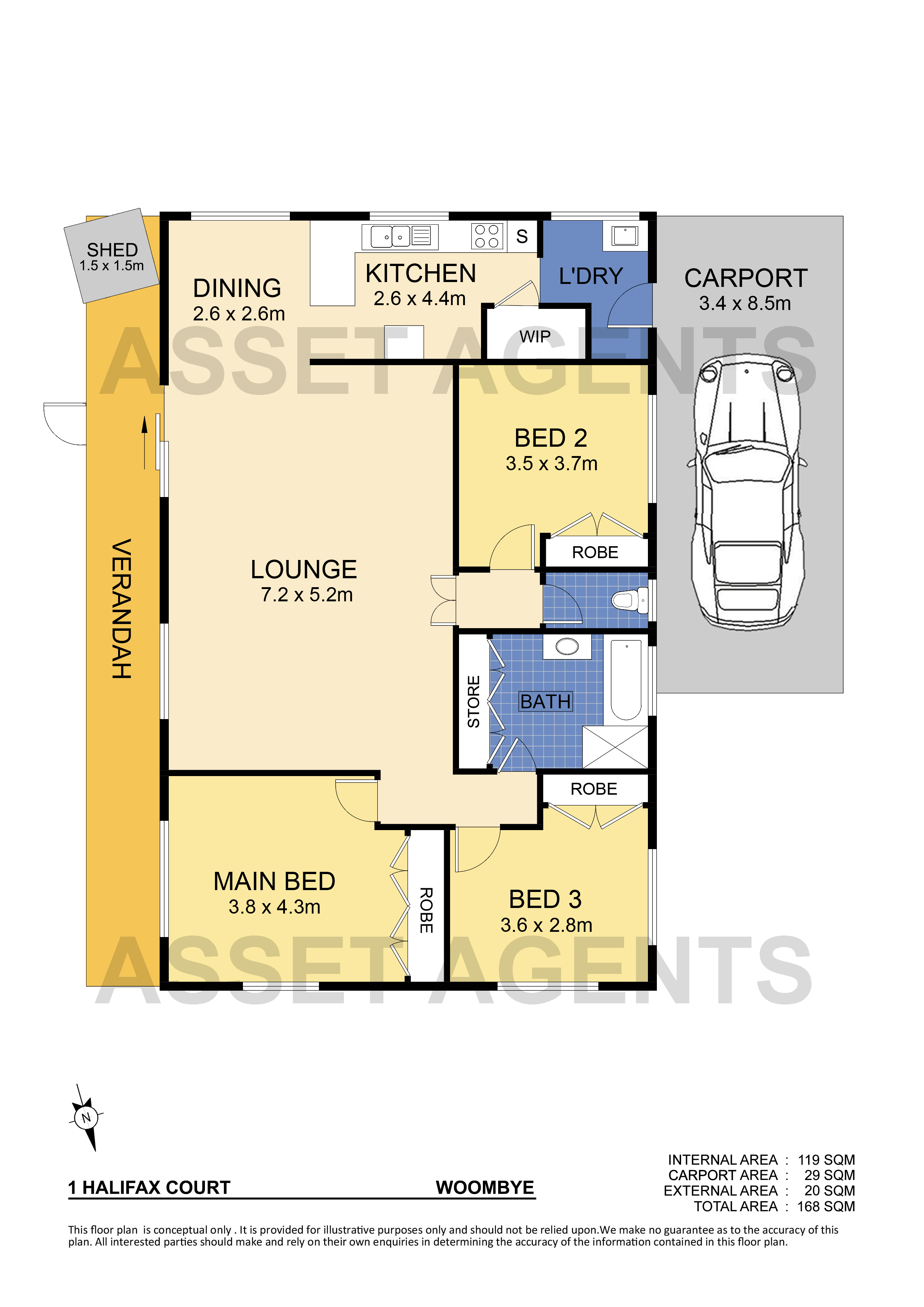 You'll love the large, carpeted bedrooms ' all with built-in-wardrobes ' and the enormous lounge, which provides a versatile living and family space. There's also a covered and securely enclosed verandah extending the full length of the house. You'll enjoy year-round comfort with split system reverse cycle air-conditioning in the living areas, and ceiling fans throughout the house.