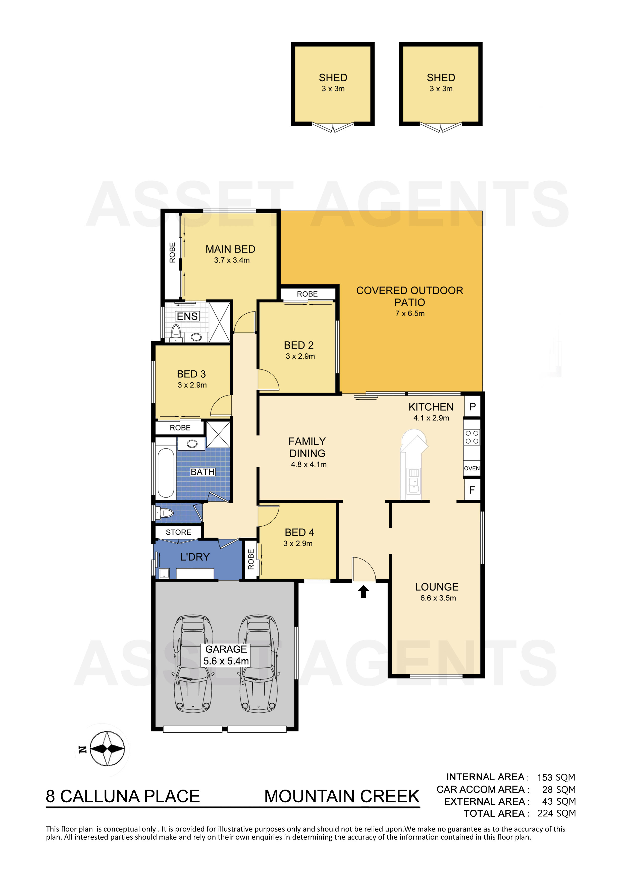 There is ample storage space available, including two garden sheds, while two vehicles are accommodated in the double garage with automatic roller doors. The home is also equipped with security screens.