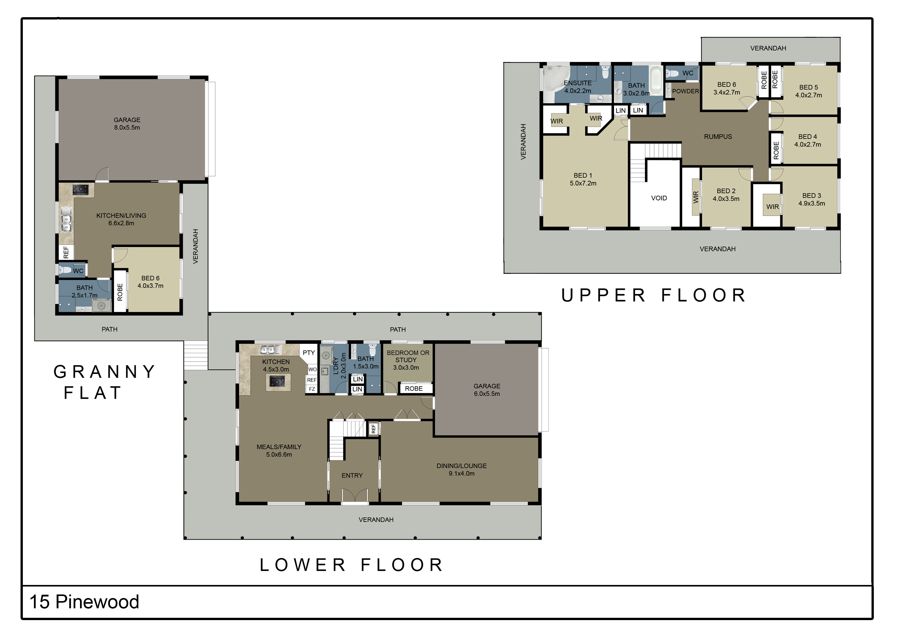 - Another 5 bedrooms all with built-in robes and ceiling fans, 4 bedrooms lead onto outside balcony