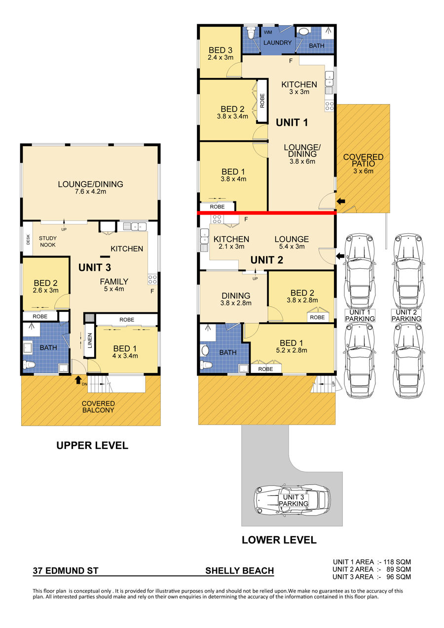 - Top floor unit consisting of 2 bedrooms, floating timber floors, massive lounge area that can be easily be converted to a 3rd bedroom. Large kitchen/dining area plus study nook and family bathroom/laundry. Front balcony