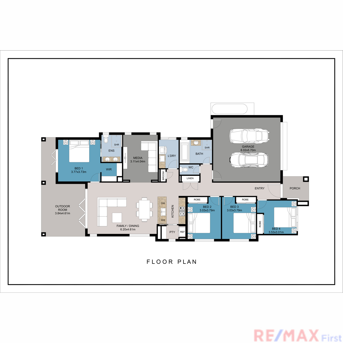 - Expansive open plan family living and dining area leading to alfresco zone