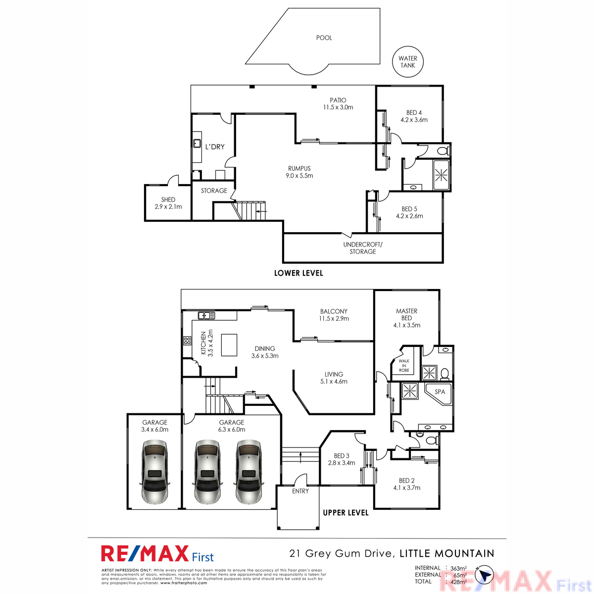 The downstairs retreat offers a huge rumpus or games room flowing out to the undercover alfresco area and garden. The two bedrooms are serviced by a downstairs bathroom. The extra large laundry is a bonus and provides ample space to add a good sized kitchenette if required.