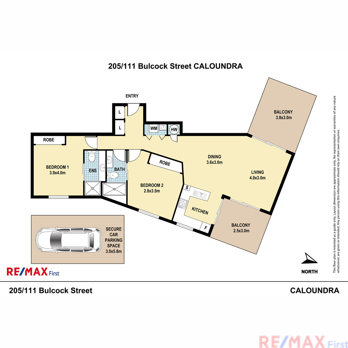 • 2 bedrooms, 2 bathrooms, and 1 car space