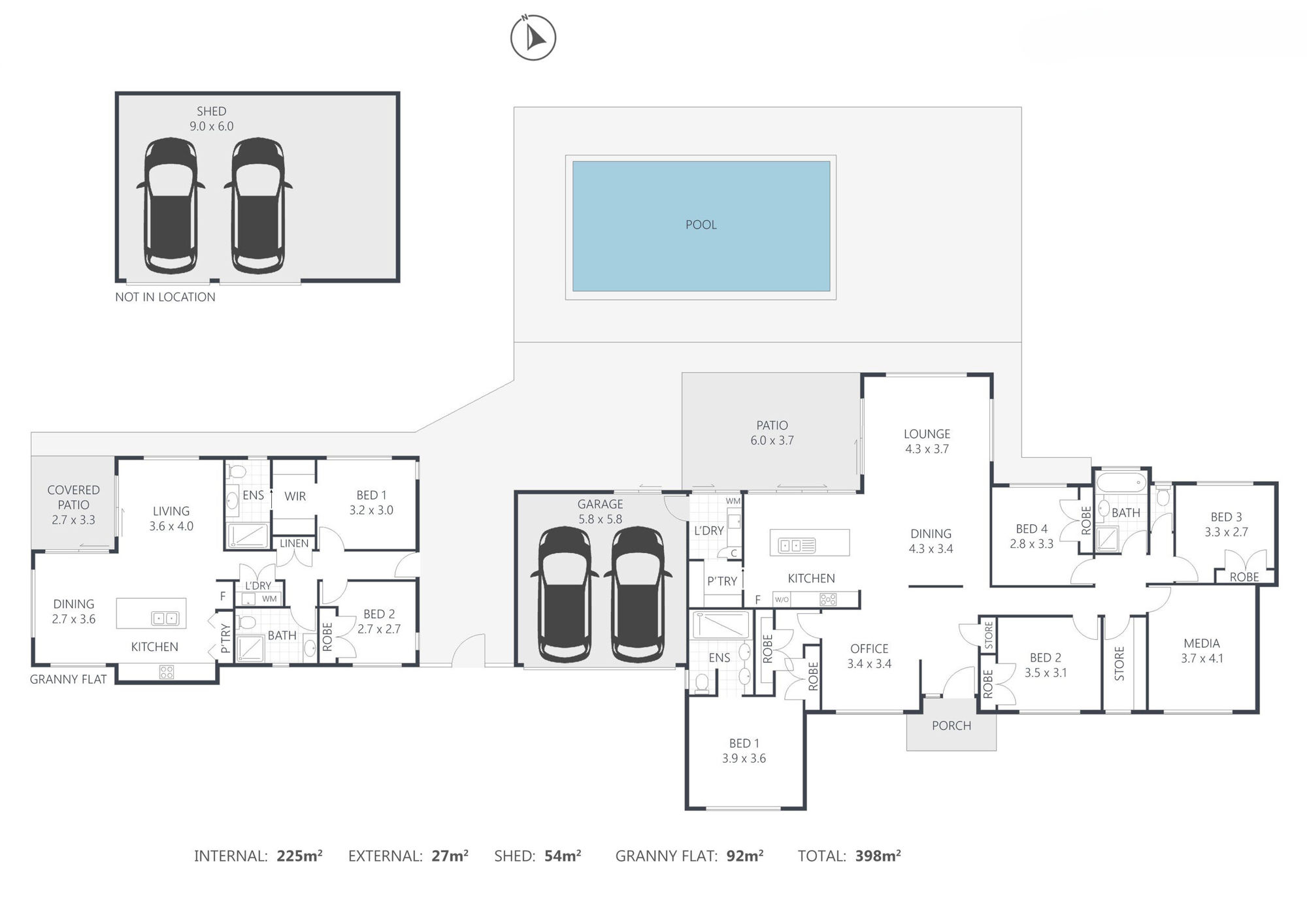 Designed with a discerning lifestyle in mind, the tranquil dual-residence estate presents a modern elegance that meets family practicality. At the end of a serene cul-de-sac and boasting an elevated vista, both homes are adorned with luxury finishes. The interiors are thoughtfully zoned, leading to multiple outdoor entertainment areas, including a resort-style pool, an inviting fire pit, and a separate media or games retreat.