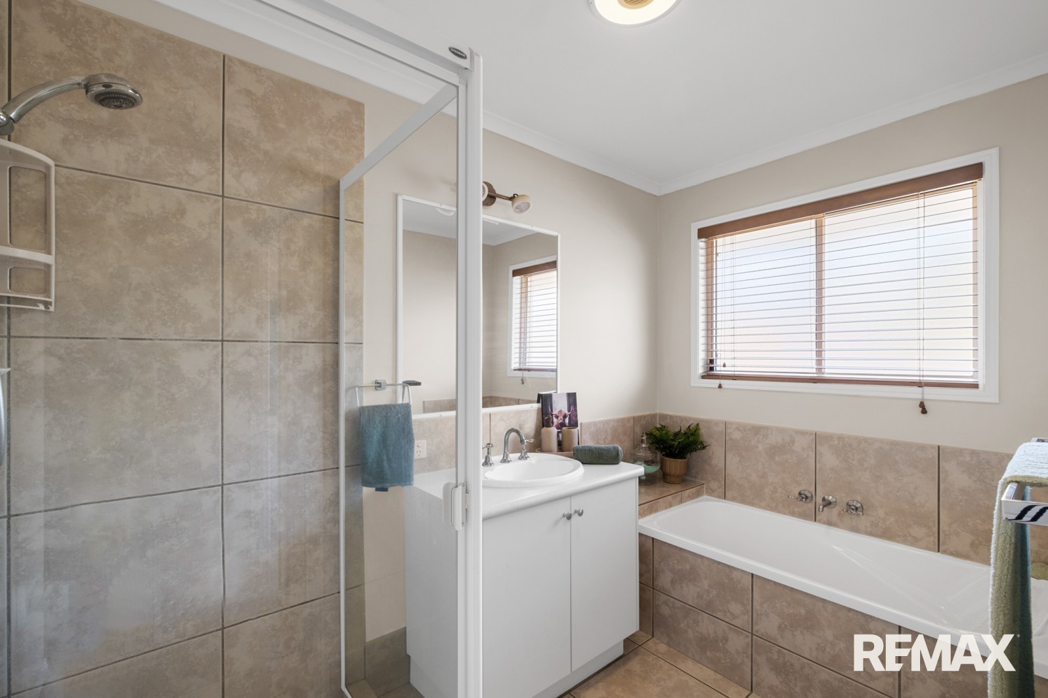 Split system air-conditioning in dining/kitchen area & main bedroom, ceiling fans throughout, attractive veneer panelled windows, plush carpets in bedrooms, stone bench tops in kitchen, high-end Falcon gas cooktop and oven, Bosch dishwasher, floor to ceiling tiles in ensuite, separate bath and shower in family bathroom, detachable outdoor fly-screens on patio, and solar power - are among the home's notable features.