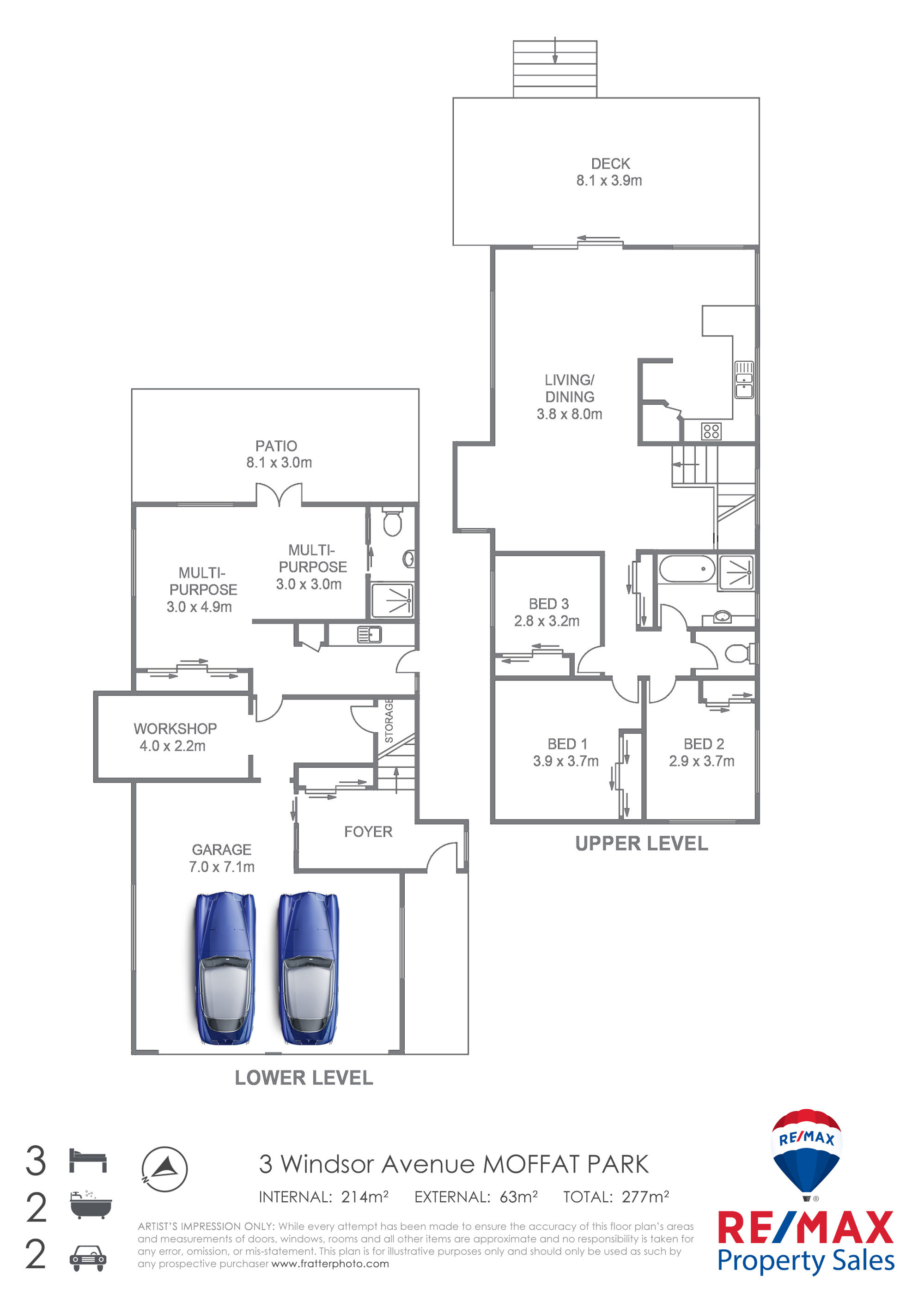 - 3 Queen-sized bedrooms, all with built-in cupboards, ceiling fans, main with aircon