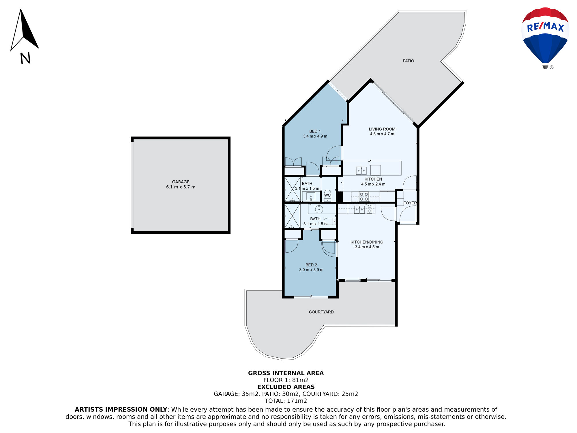 - Heated 25m pool, spa, steam room, gym, and onsite restaurant