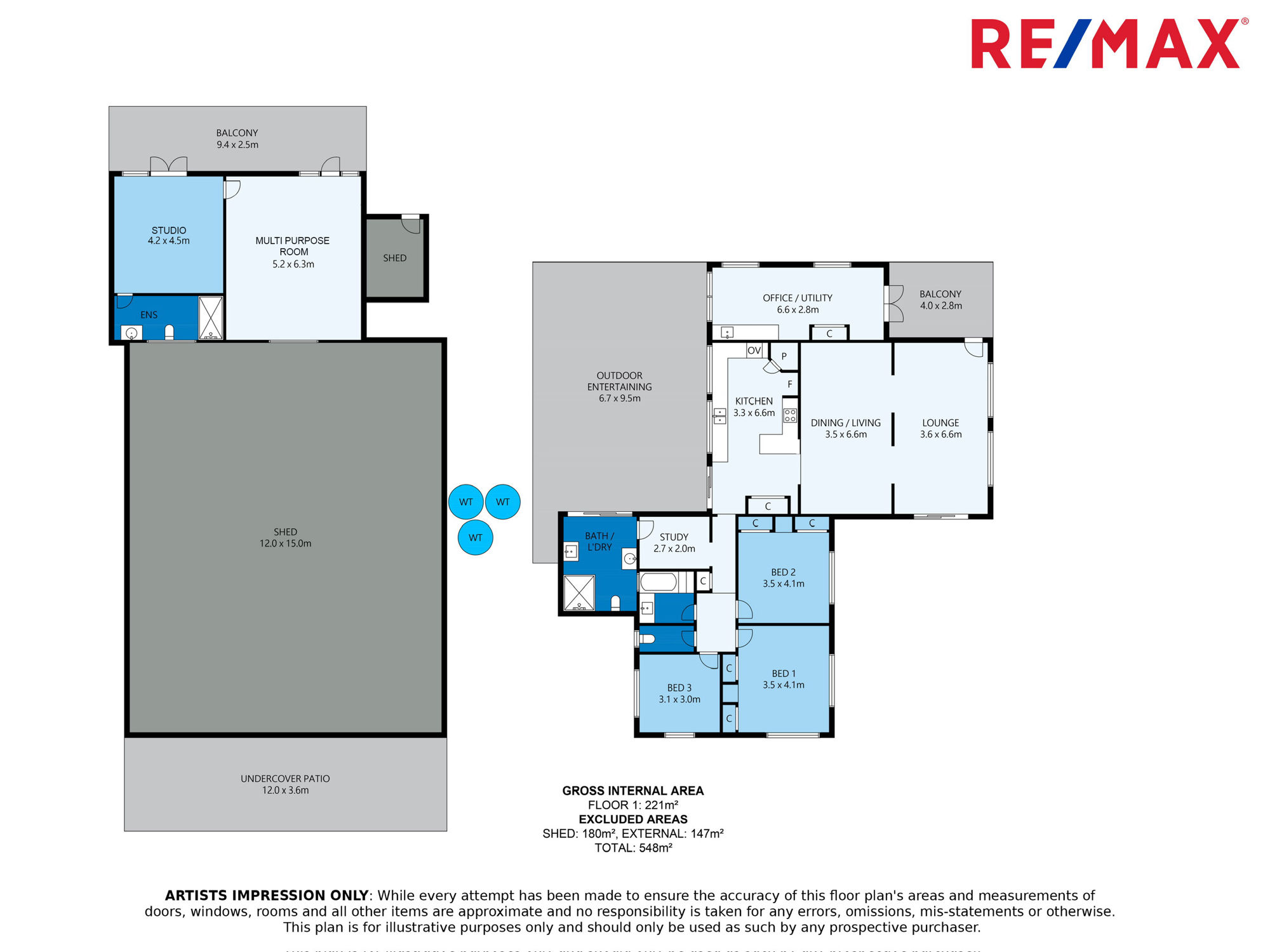 - Reverse cycle air-conditioning in the main house, studio and utility room