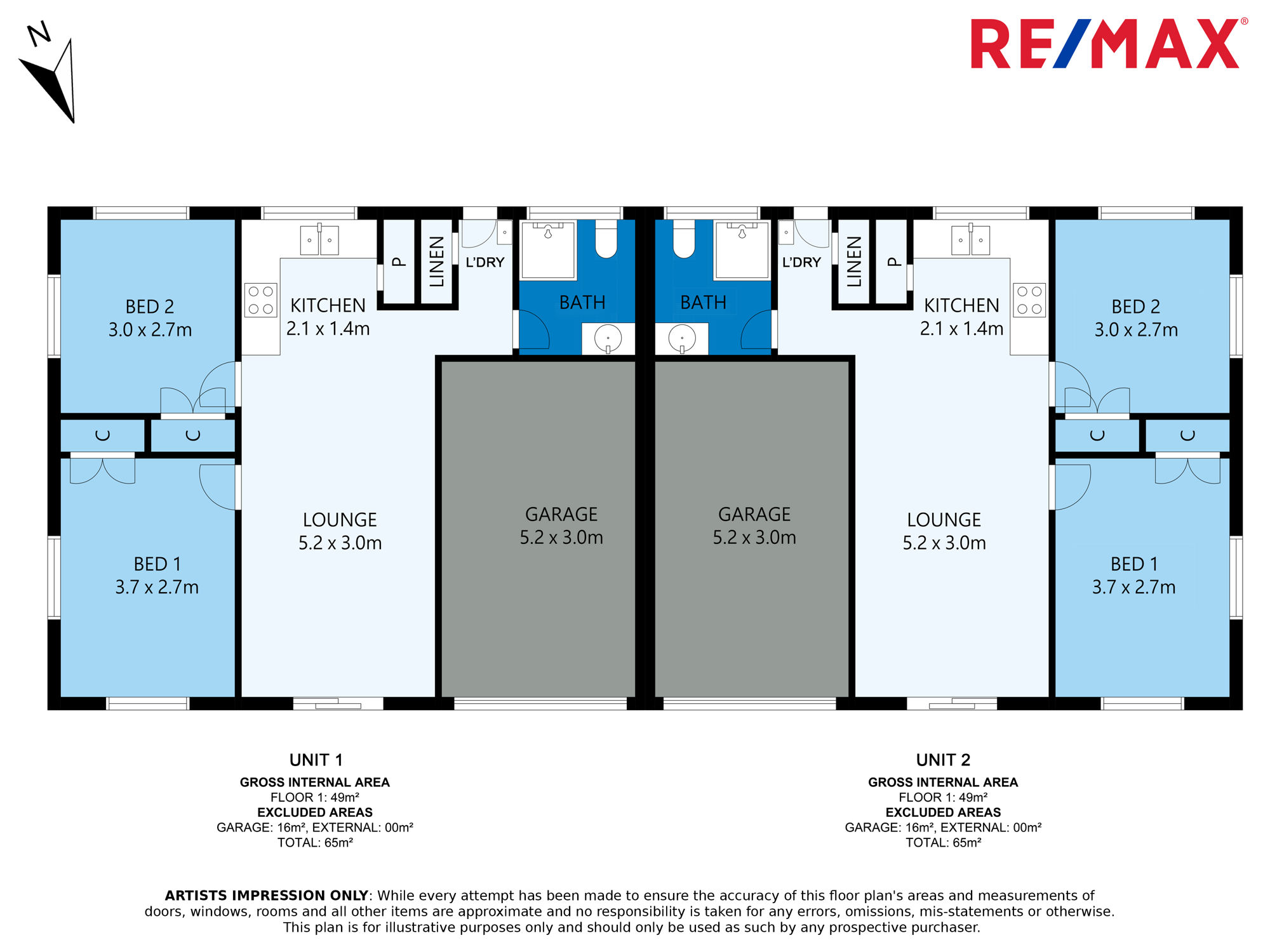 - Each unit has: two bedrooms, all with built-in wardrobes; bathroom, laundry, kitchen & living area - Robust construction inside and out - brick exterior, with brick and besser block interior walls