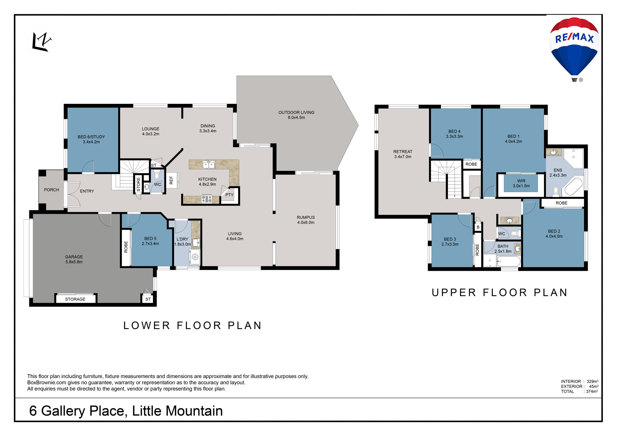 - 4 Living areas: separate lounge/media, family living area, rumpus room plus upstairs retreat