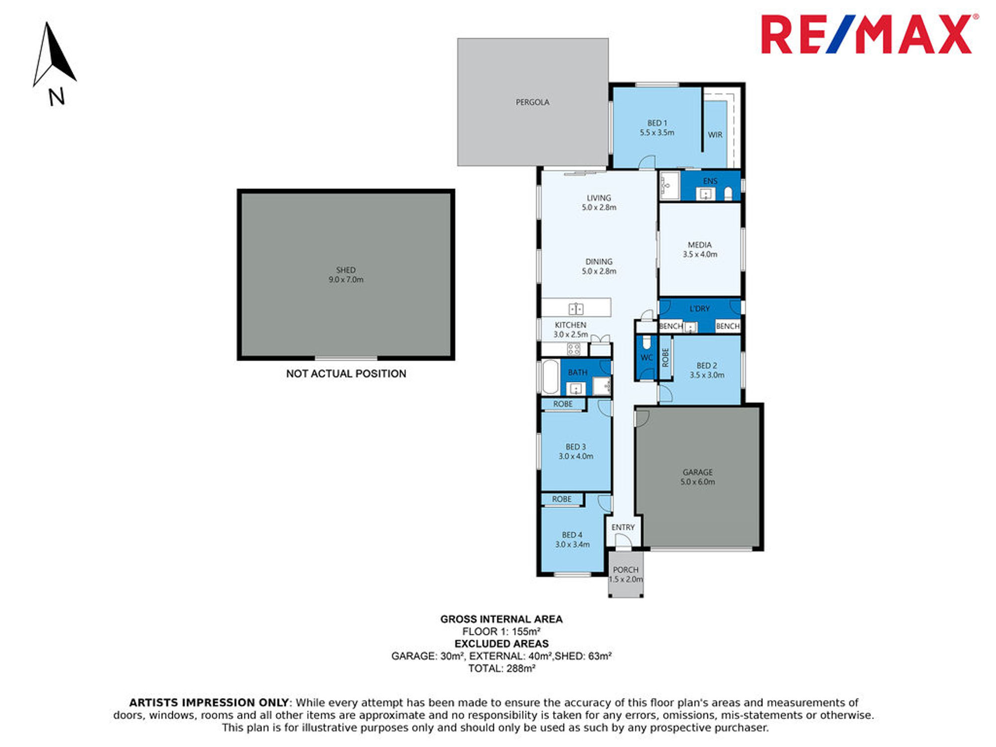 Vehicles are comfortably accommodated in the double garage with automatic roller door access, while the 9m x 7m Shed with 2.7m high roller door and storage mezzanine provides additional space for cars, caravan, boat or workshop area.