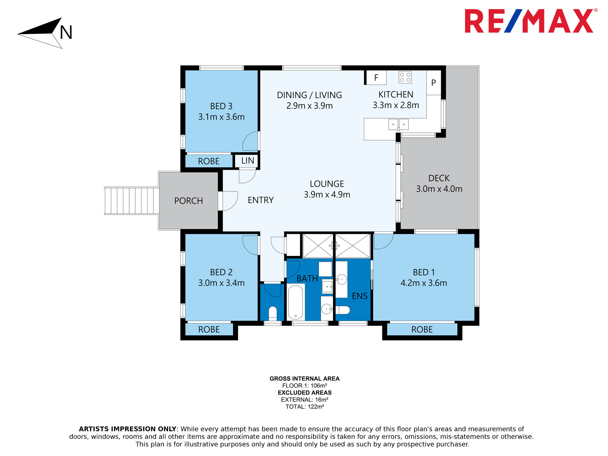 - Three large bedrooms