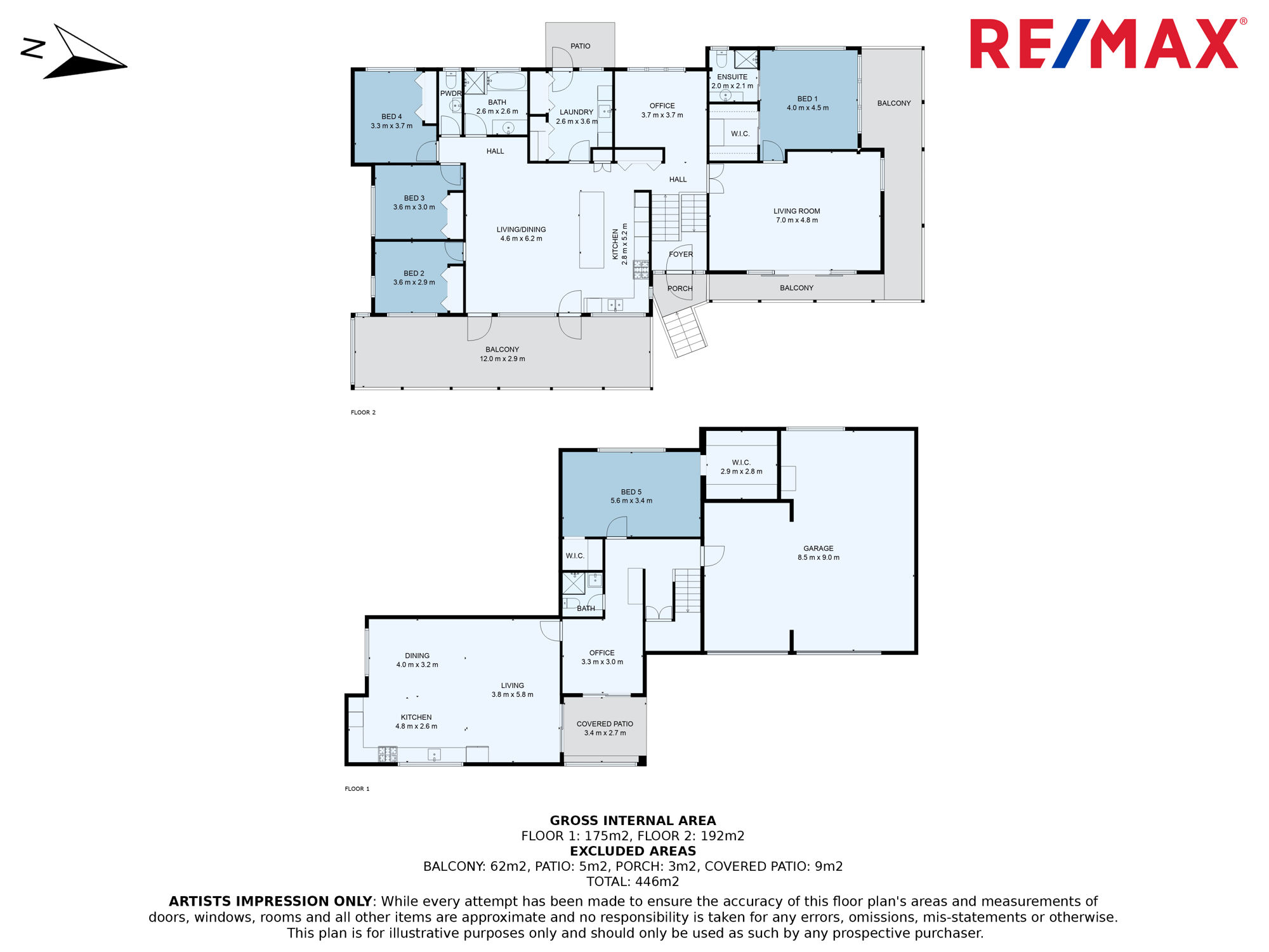 Altogether the home comprises five bedrooms, three bathrooms, three living areas, two modern kitchens, two offices, east facing balcony, north facing balcony, separate laundry, and triple lock-up garage. Current owners have reconfigured the ground level to be fully self-contained with its own separate entry and covered patio.