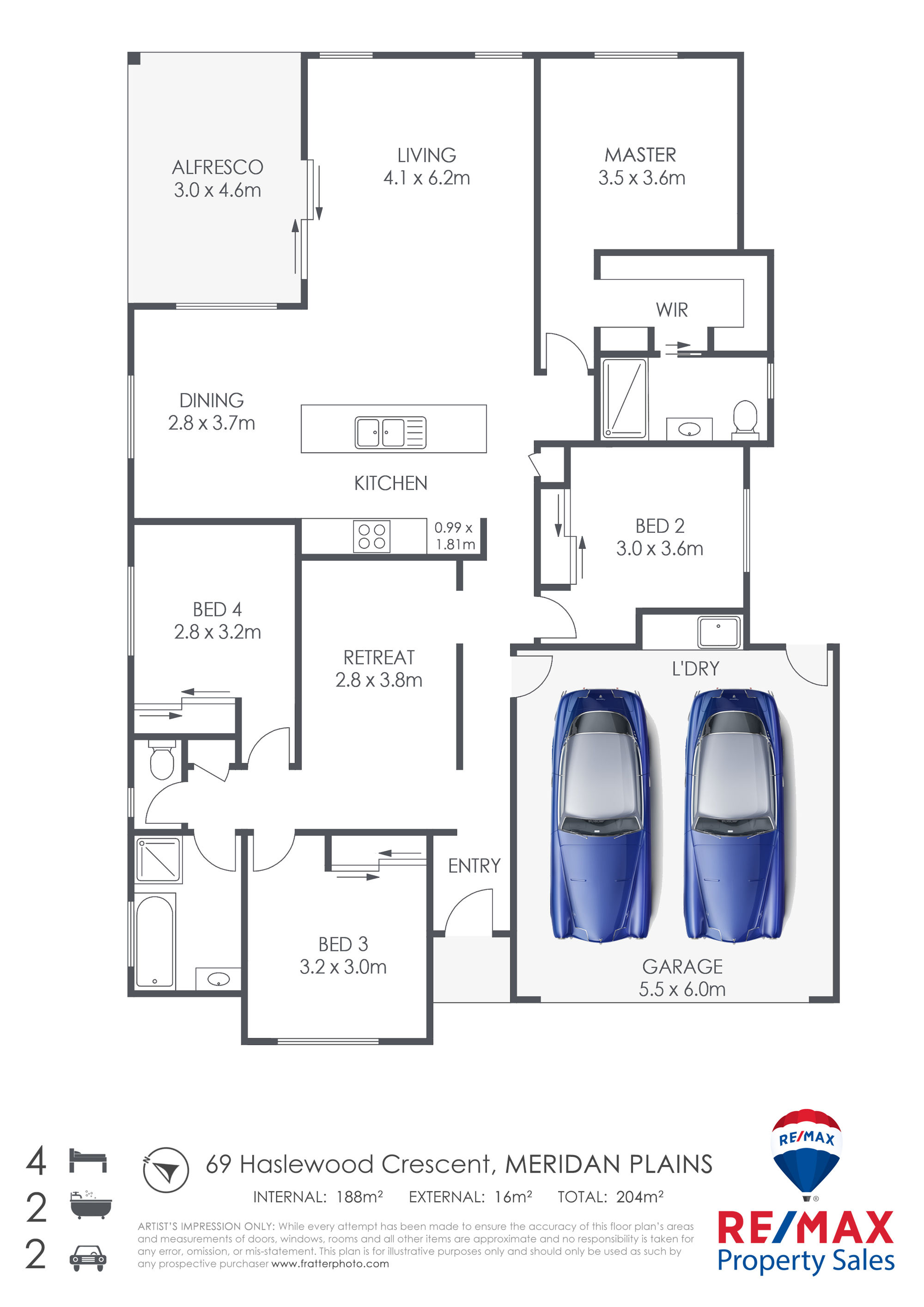 - Large main bedroom located at back of house with ensuite & WIR