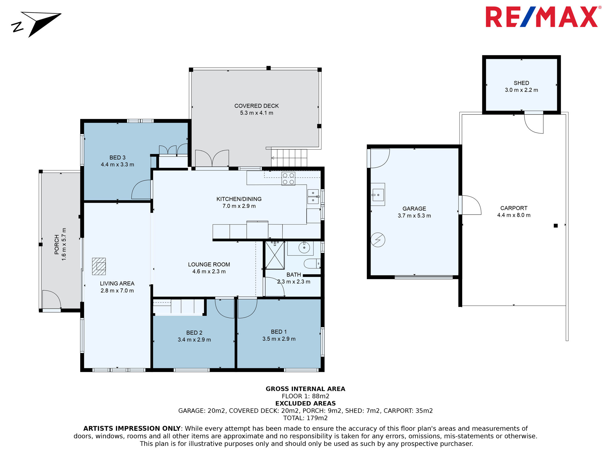 The home itself comprises a covered porch at entry, three bedrooms, modern bathroom and kitchen, two living areas, and large, elevated north-east facing side deck with leafy outlook. In addition, there is side access to an oversized single carport and single garage with laundry facilities.