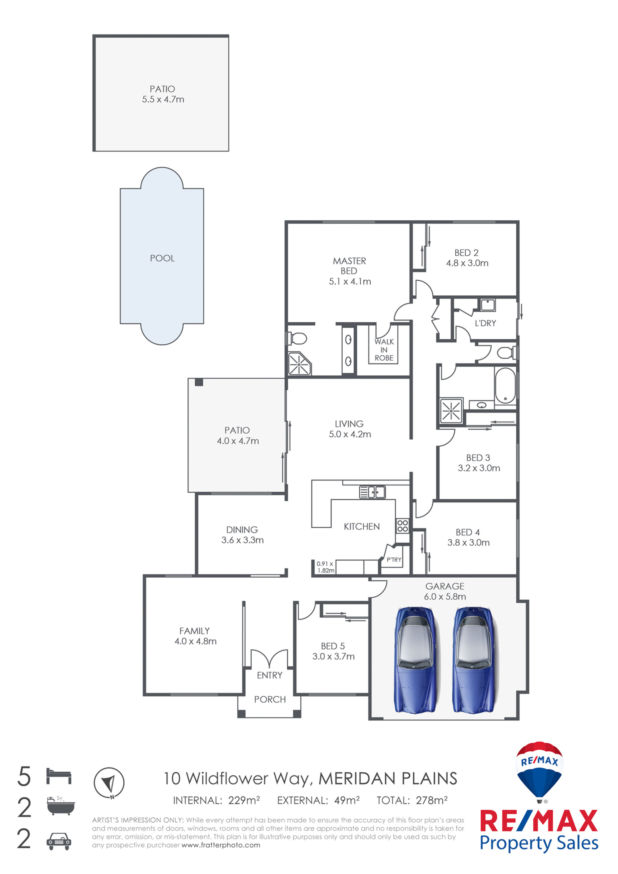 The remaining 4 bedrooms are queen sized, with built-in robes and there is also a full family bathroom with separate toilet and laundry.
