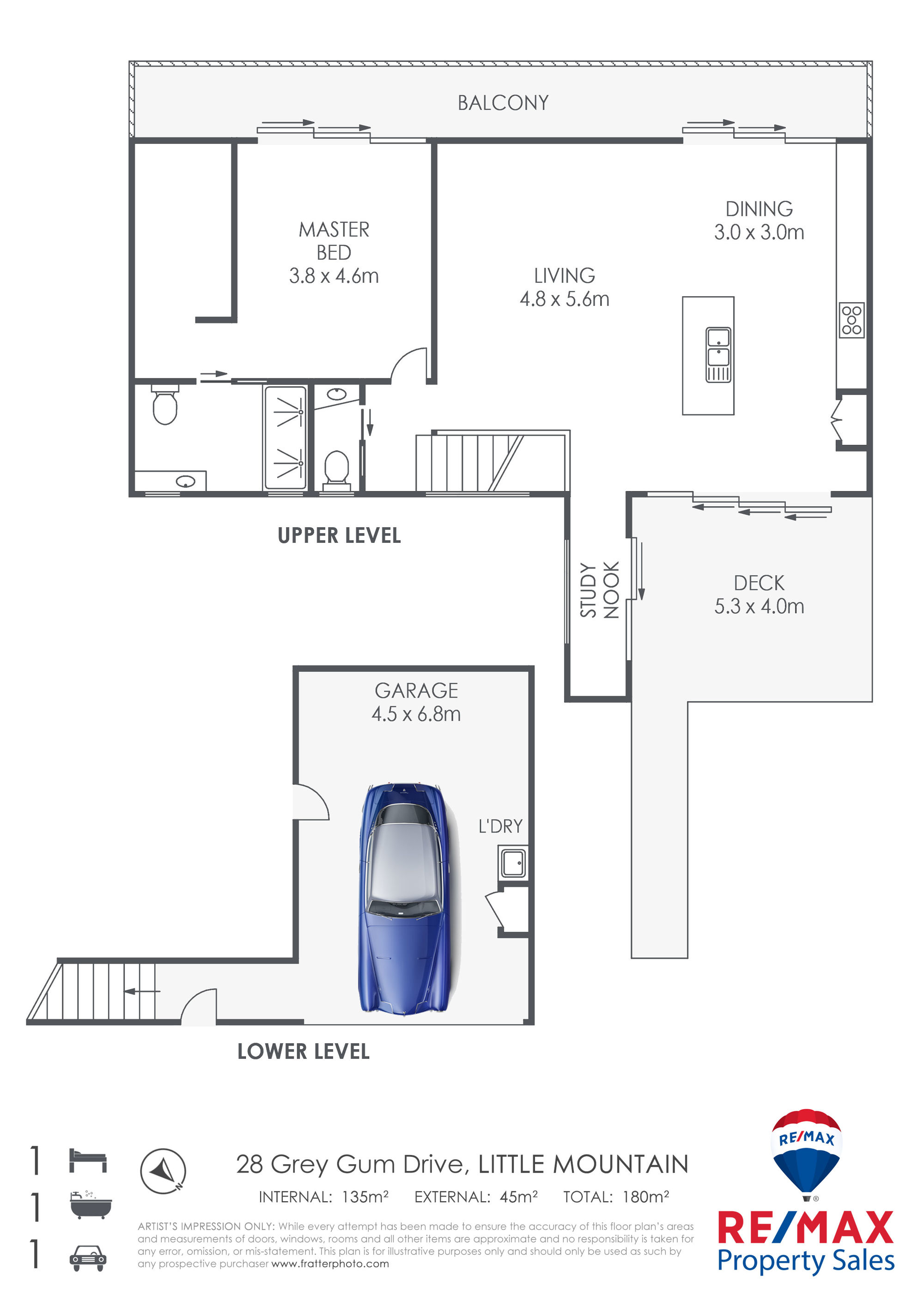 The main bedroom offers sublime views and private entry to the deck and also features an ensuite plus huge walk-in robe. An additional office space and powder room, complete the upstairs level.