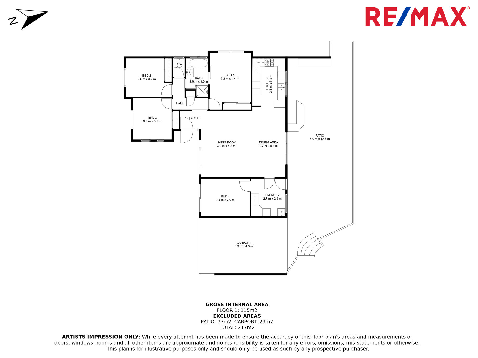 Across a single level the home comprises covered entry porch, four bedrooms, 2-way bathroom, separate toilet, open plan living/dining flowing to 5x12.5m patio, modern kitchen, separate laundry, and lock-up carport; plus, off-street onsite parking for additional vehicles.