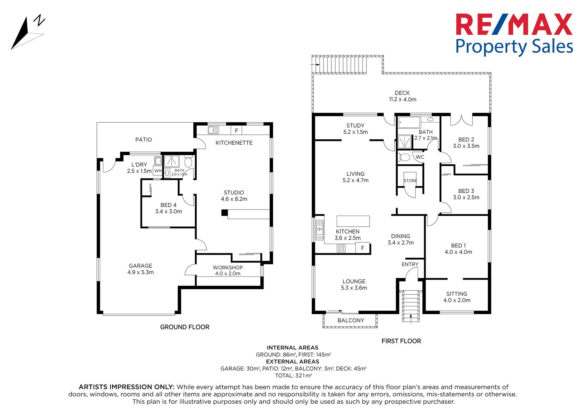 • Upstairs features three open-plan living areas, three bedrooms, and a study, seamlessly flowing onto an expansive entertainer's deck, perfect for hosting and unwinding while enjoying glimpses of the ocean.