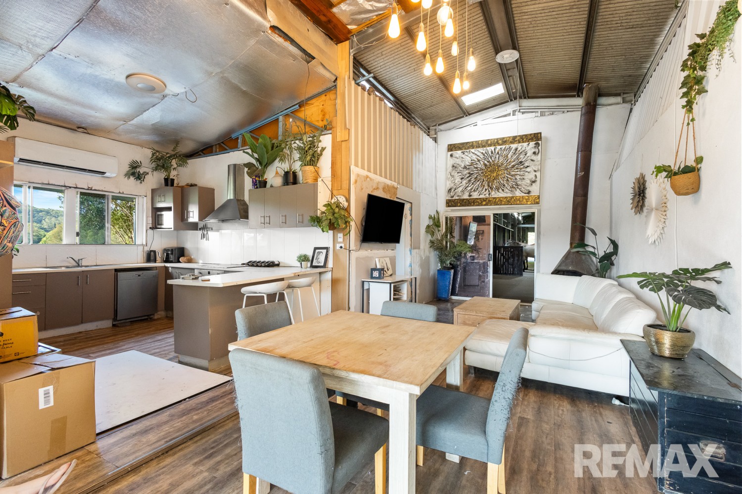 At the centre of the property, a substantial 40 metre by 12 metre shed anchors the operational footprint. Internally configured for both equestrian use and on-site living, it incorporates four stables, a tack room and dedicated storage areas alongside a kitchen, bathroom, laundry and three-bedroom accommodation. This provides immediate usability, allowing you to occupy and operate the property from day one without the need to build.