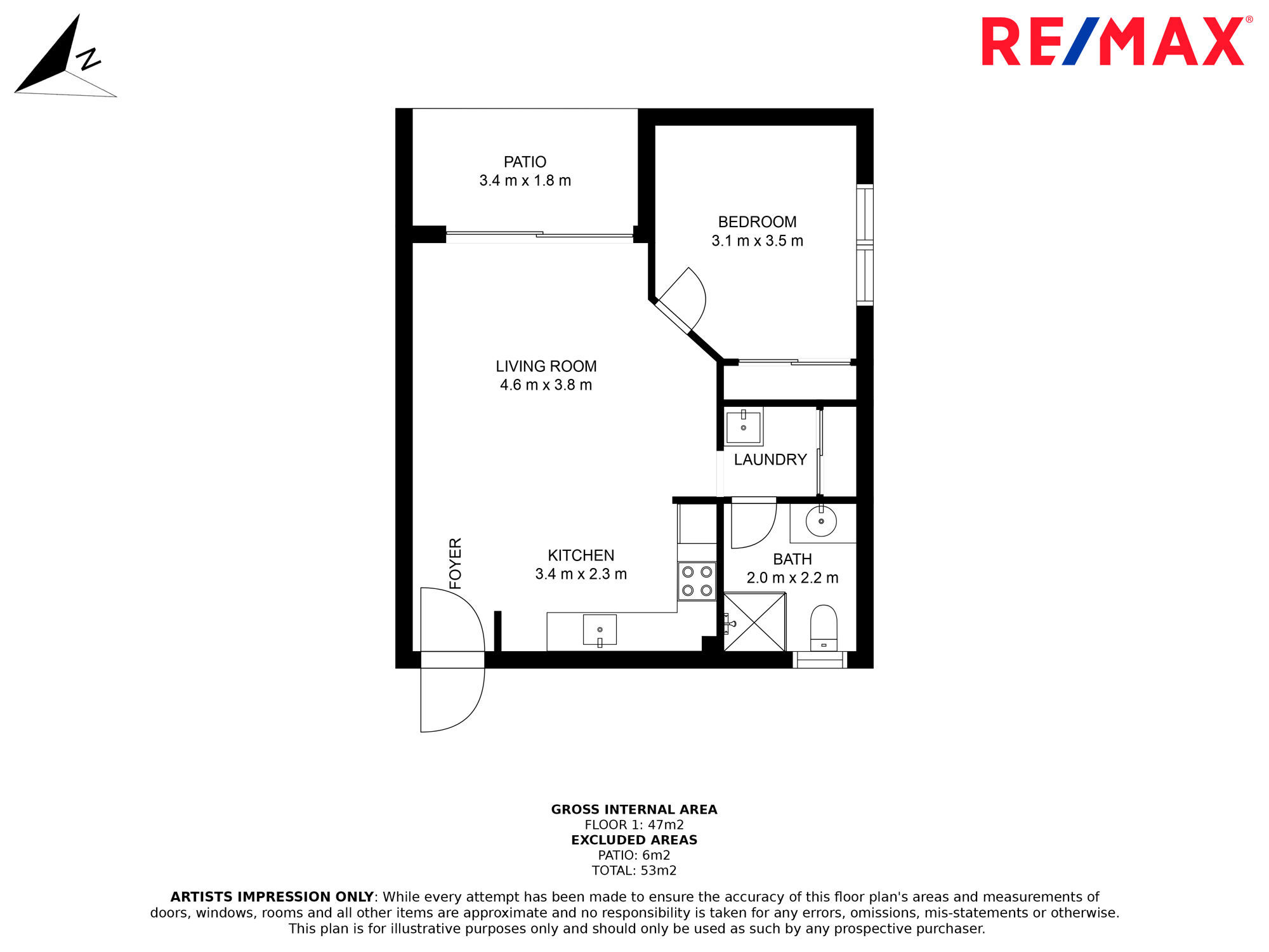 • Air-conditioned living area opening onto a private patio and grassed courtyard