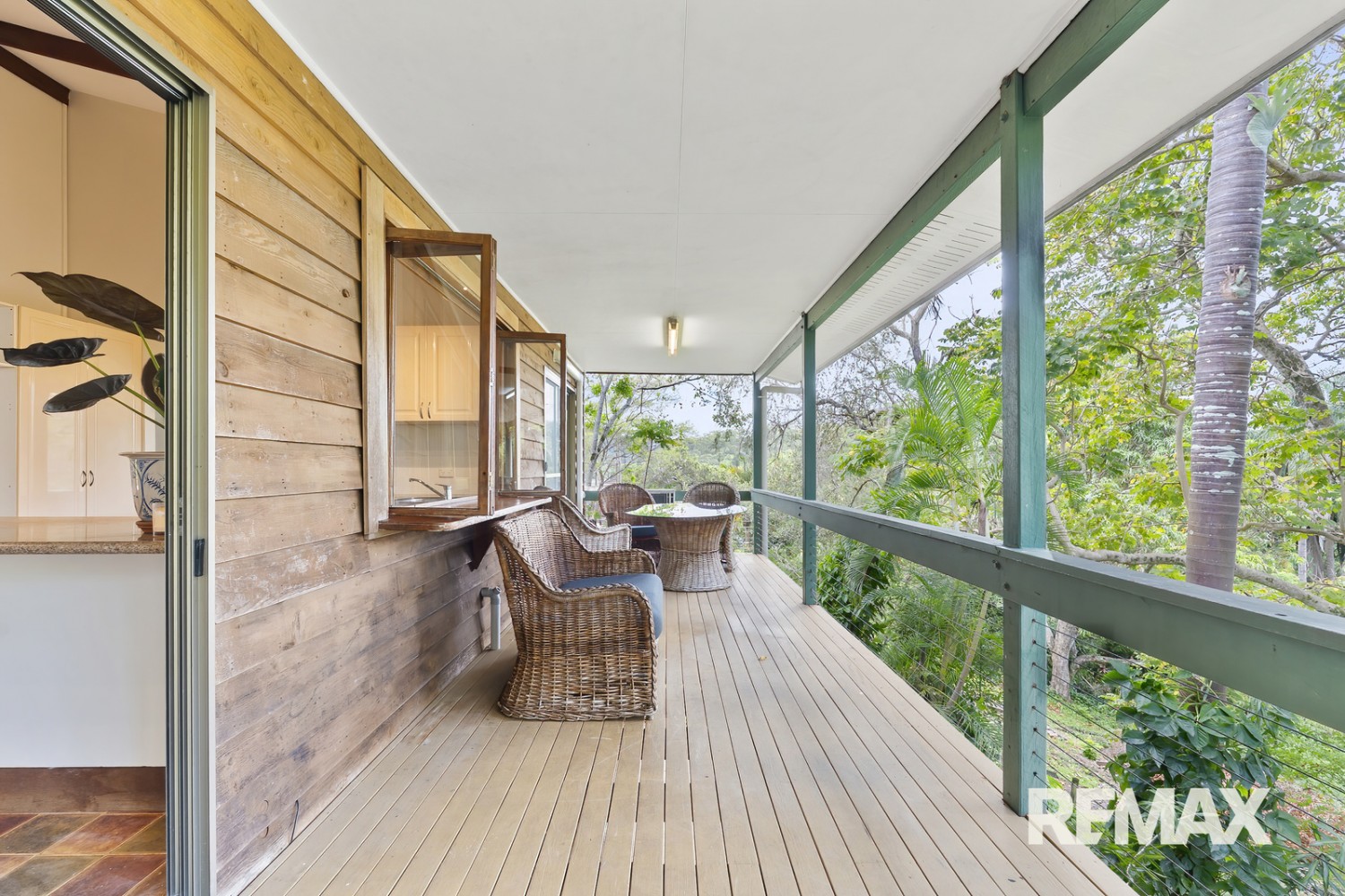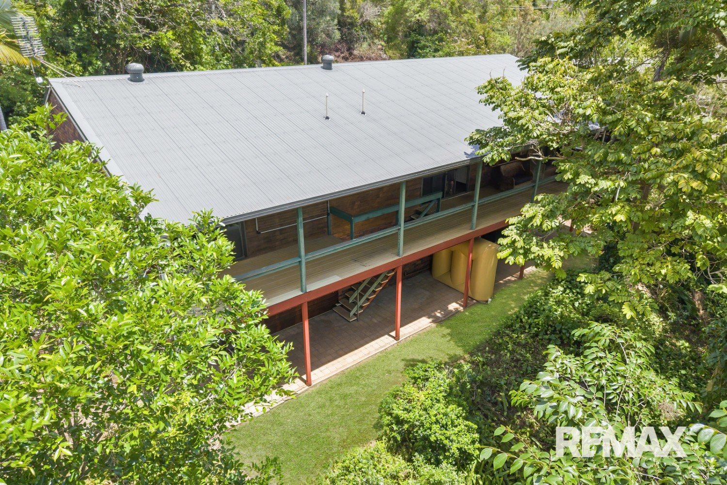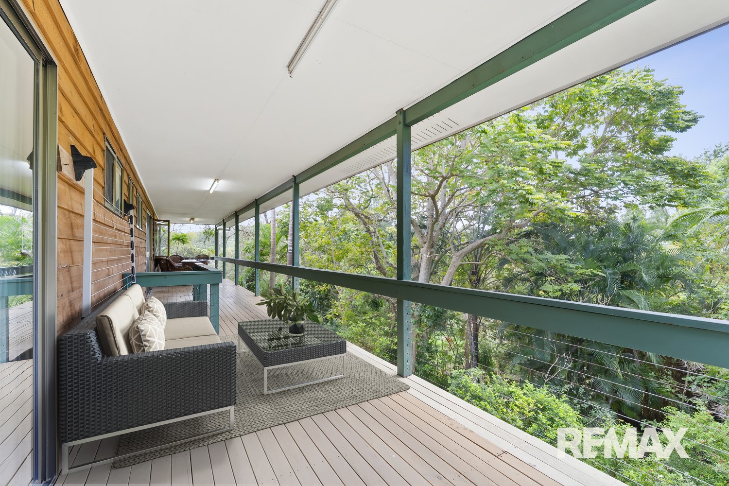 Across approximately 406 square metres the home comprises six bedrooms, four bathrooms, kitchen plus 2 x kitchenettes, multiple living areas, full length north-east facing upper deck with elevated rainforest/treed outlook, under-deck patio, and double carport.