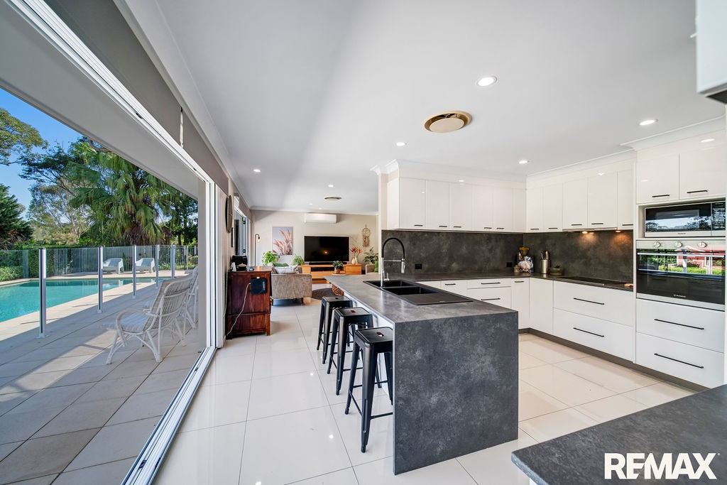 The kitchen is a standout: a sleek stone island, streamlined cabinetry, quality appliances, and generous storage - all overlooking the living, dining and pool. Louvers and block-out blinds give you full control over airflow, privacy and light across the kitchen, living and dining areas.