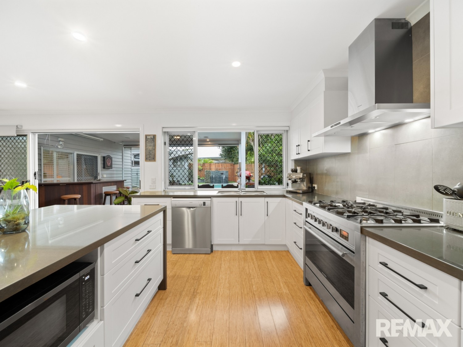 Step into the heart of the home where a modern gourmet kitchen with stone benchtops, a 900 mm gas cooktop and central island connects effortlessly to an expansive covered alfresco deck - perfect for relaxed entertaining, or simply viewing the pool and garden. The open-plan living/dining area features air-conditioning and ceiling fans, plus a dedicated bar and projector screen area for relaxed evenings.