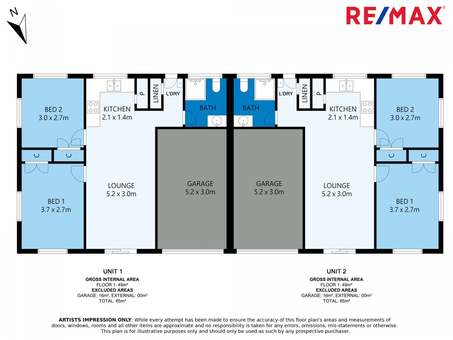 - Established shared with unit 2, low maintenance yard with 3m x 3m shed