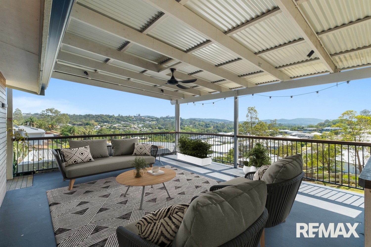 Across a single level the home comprises three bedrooms, two bathrooms, modern kitchen, open plan living/dining flowing out to a huge north-east facing covered deck showcasing glorious leafy views across town and beyond, and separate laundry.
