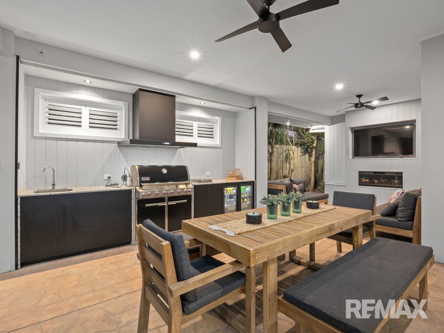 Across an expansive single level, the residence comprises four bedrooms (plus fifth bedroom in self-contained studio), three bathrooms, study nook, well-equipped central kitchen with walk-in pantry, four separate internal living areas, covered outdoor terrace with built-in kitchen and electric fireplace, separate laundry, and triple lock-up garage.