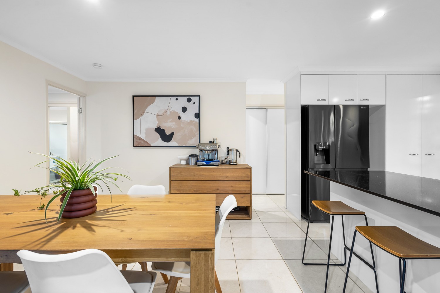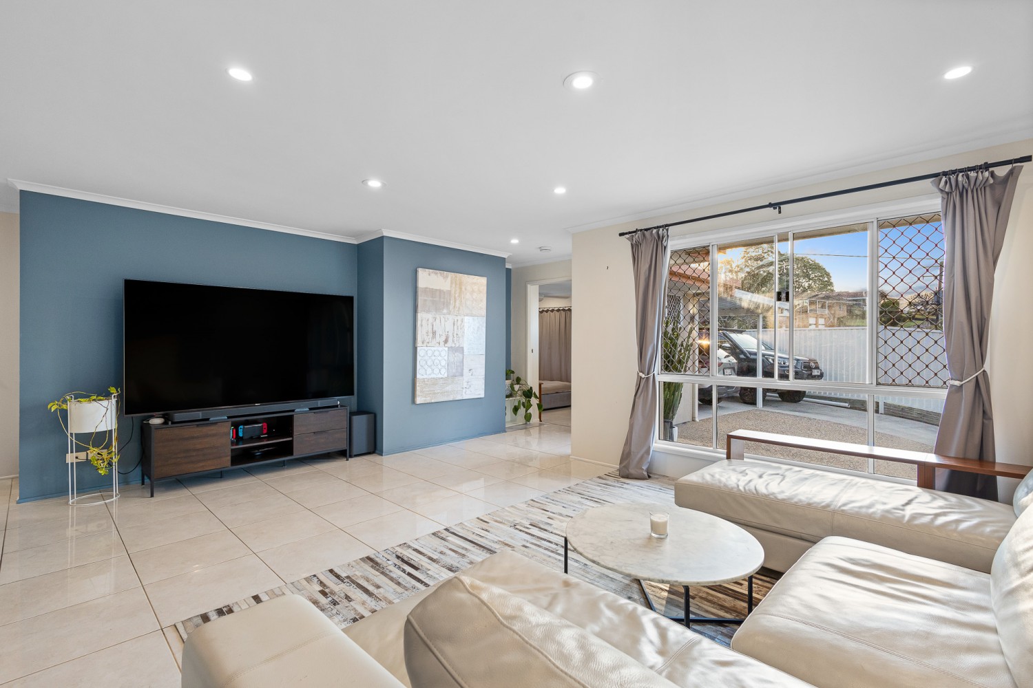 Light-filled and airy, the open-plan kitchen is the heart of the home, featuring stone benchtops, stainless steel fittings, modern appliances, and a dishwasher. The adjoining living and dining spaces are air-conditioned for year-round comfort and flow seamlessly to the undercover entertaining area - the perfect setting to enjoy the garden views, weekend gatherings, or quiet family evenings.