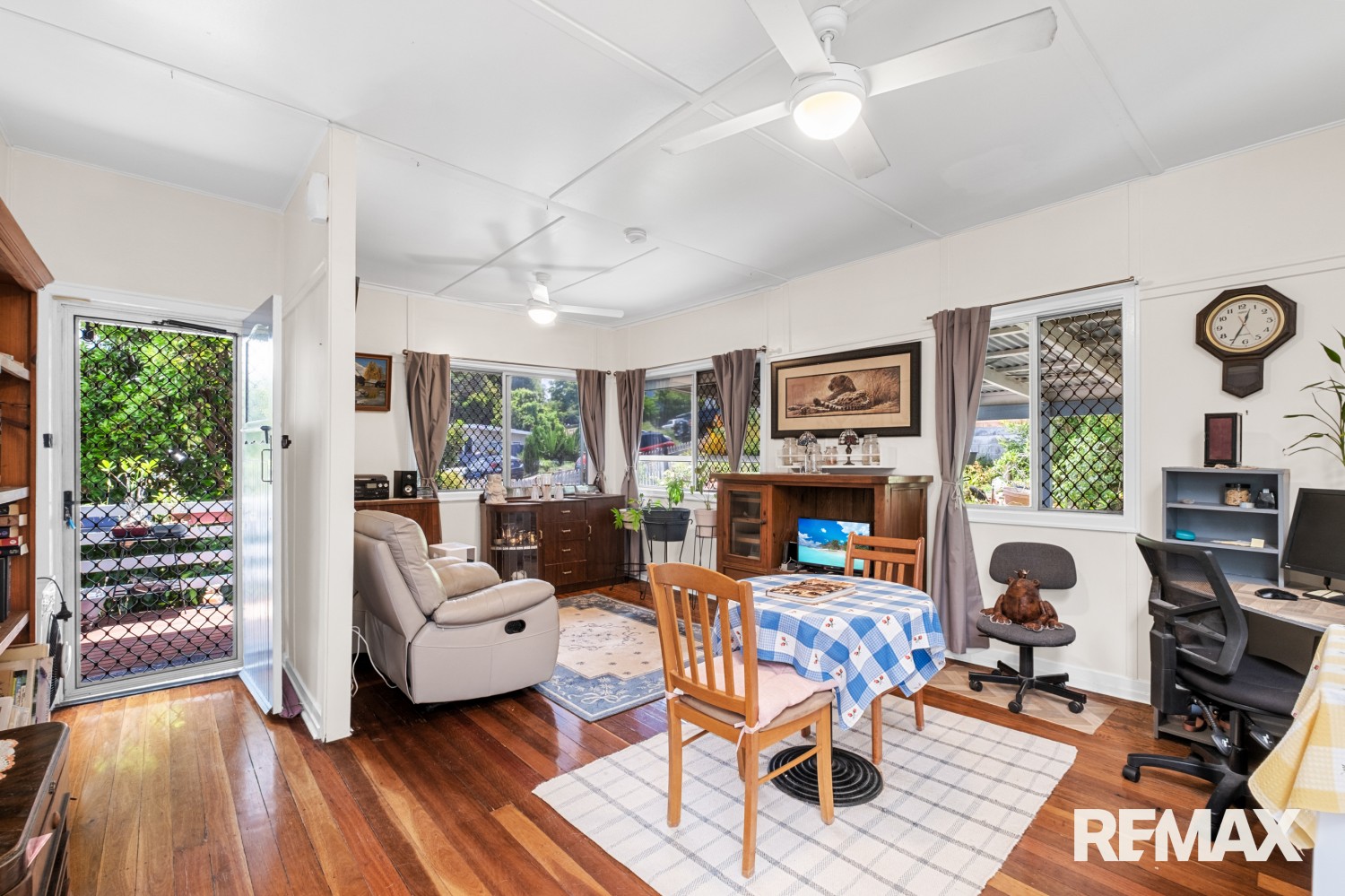Hardwood floors run throughout the majority of the home, adding character, warmth and durability, while generous natural light and ceiling fans enhance everyday comfort. The layout will suit families, couples or downsizers looking for a home with personality and practical living.
