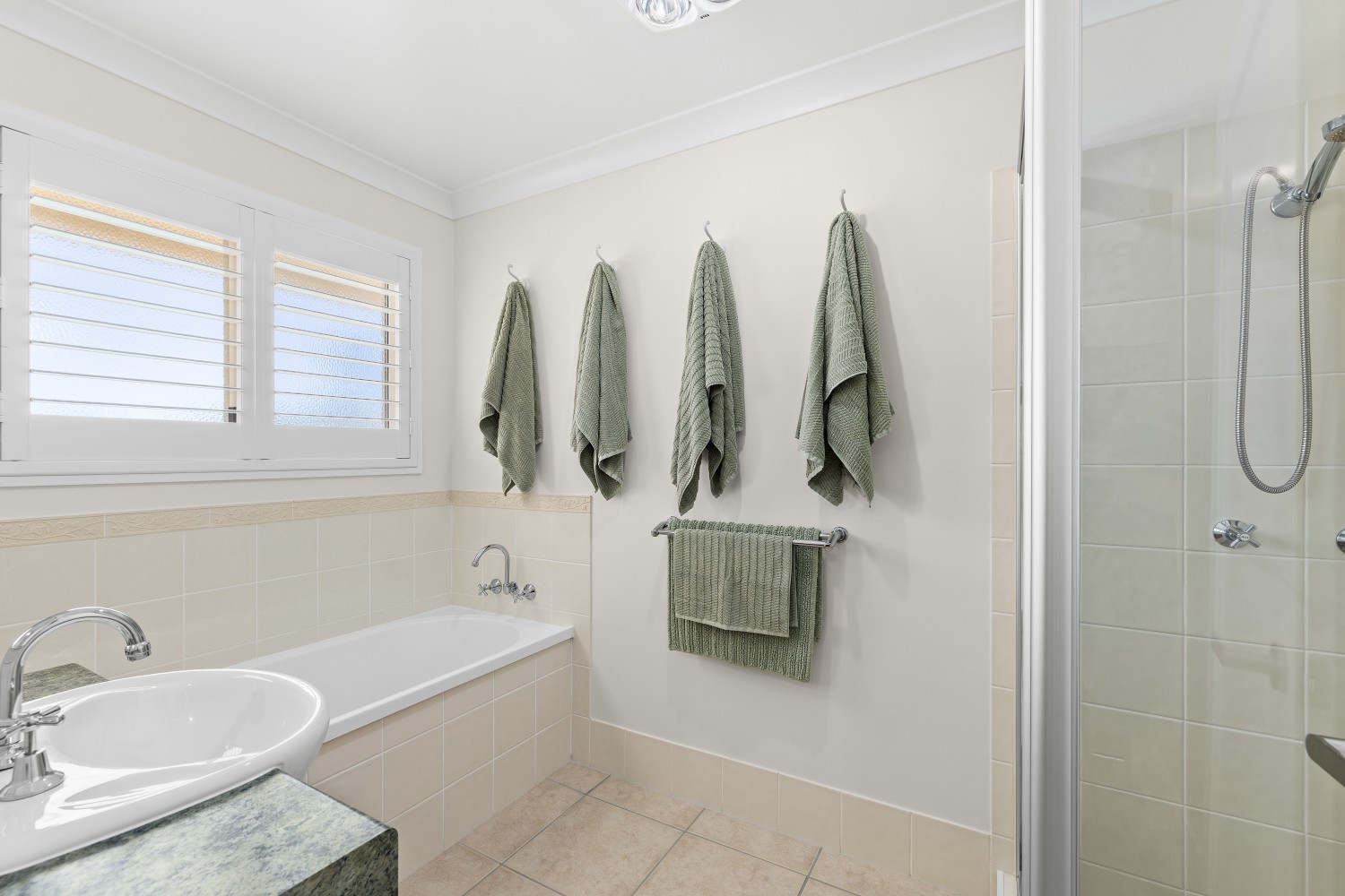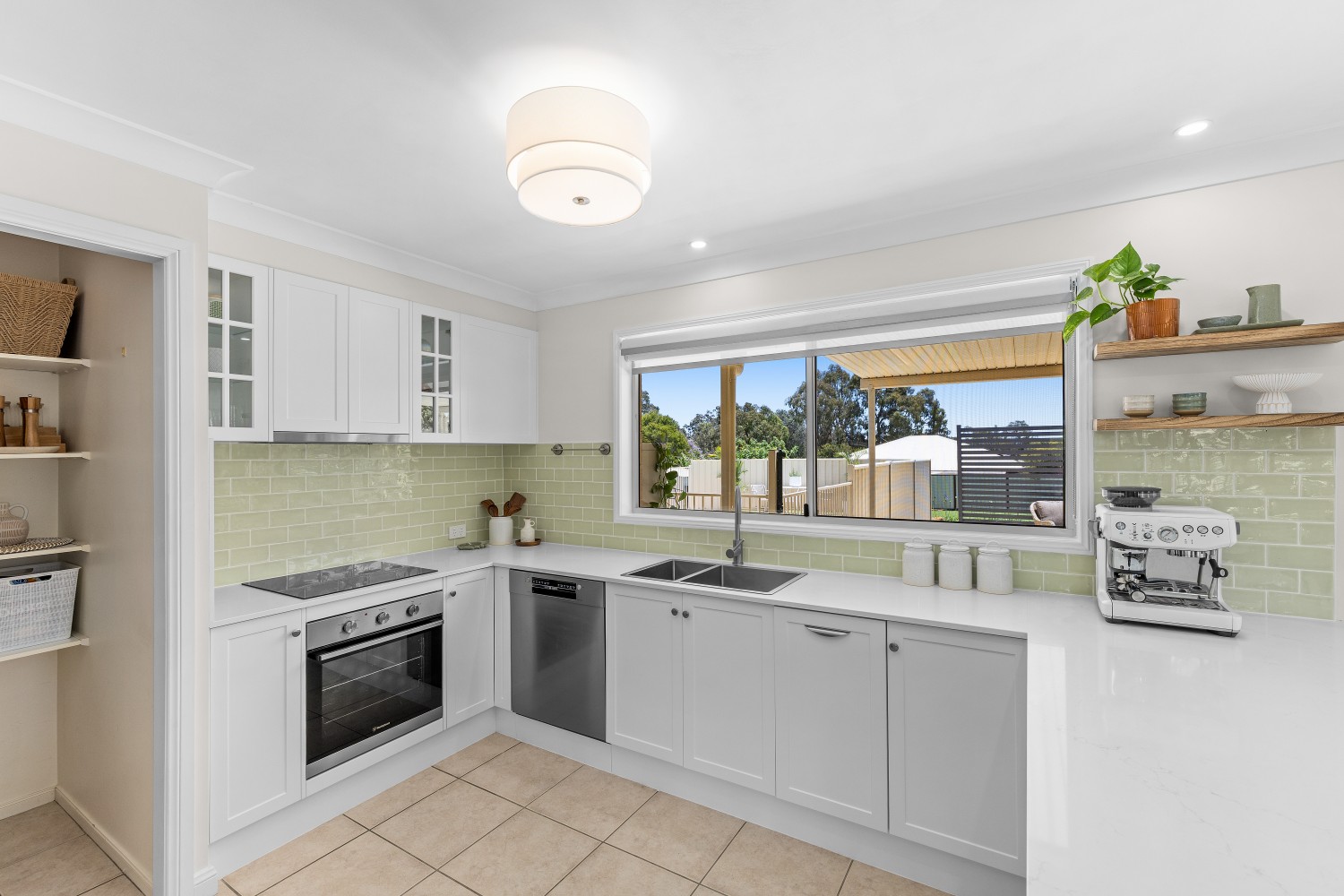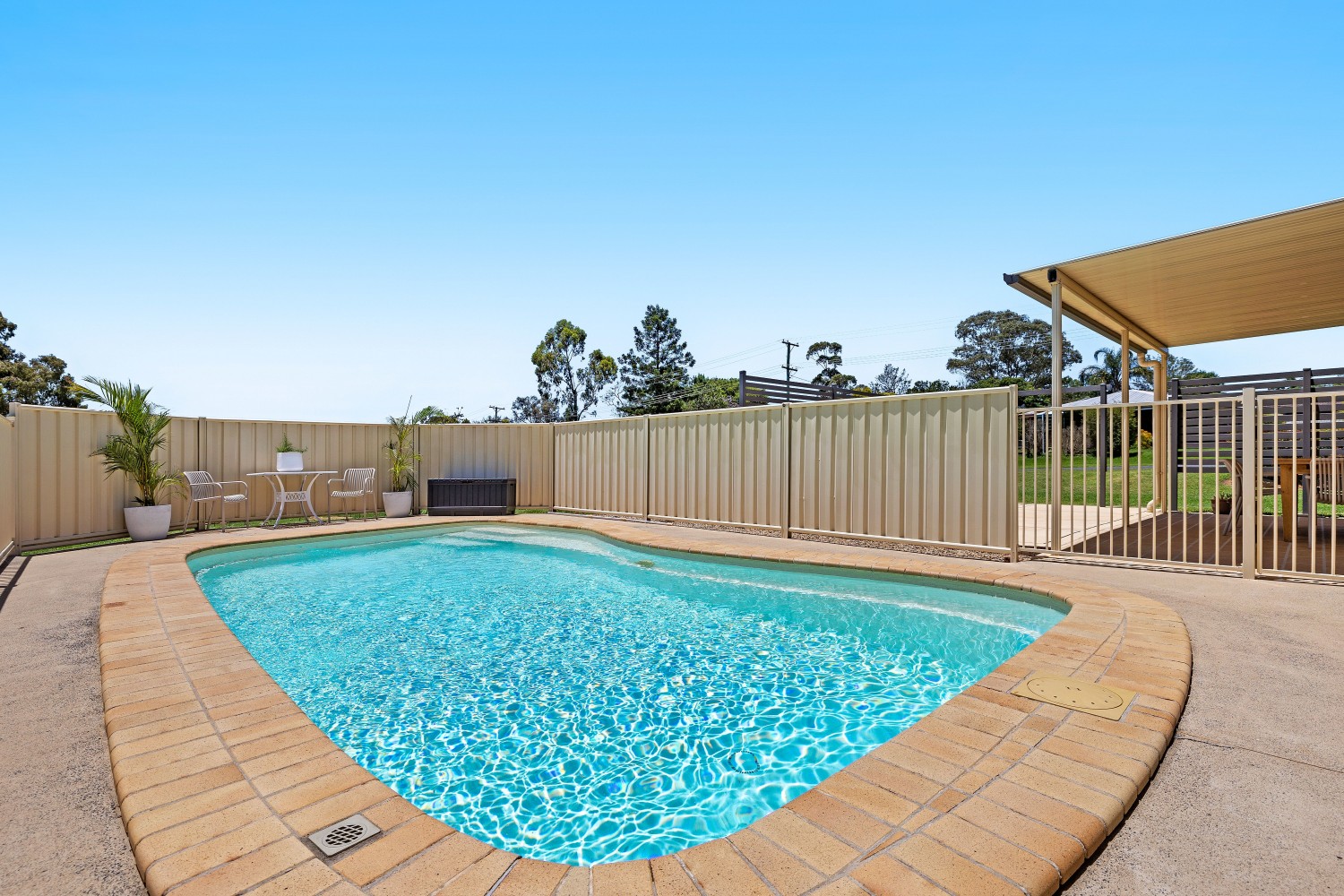 The living zone of the home, combining kitchen, dining and living room extends to include the outdoors, with French doors opening on one side to the wrap-around patio while a sliding glass door on the other leads out to a large, partially covered entertaining area complete with in-ground pool. The kitchen itself has been recently renovated and features a YDL stone bench-top, walk-in pantry, Bosch dishwasher and Westinghouse appliances.