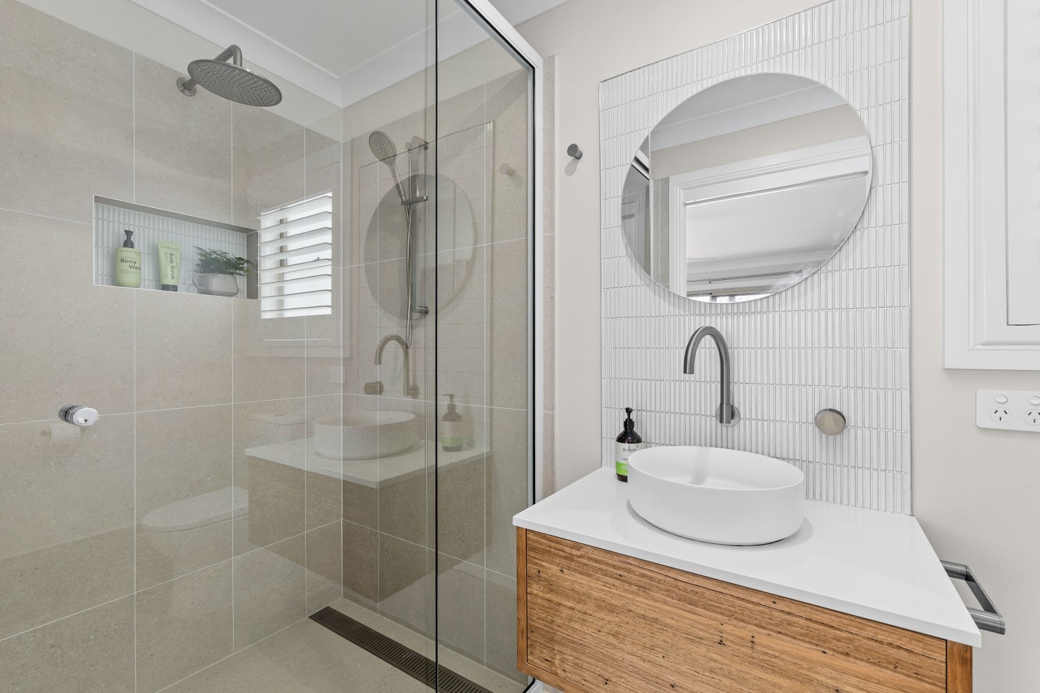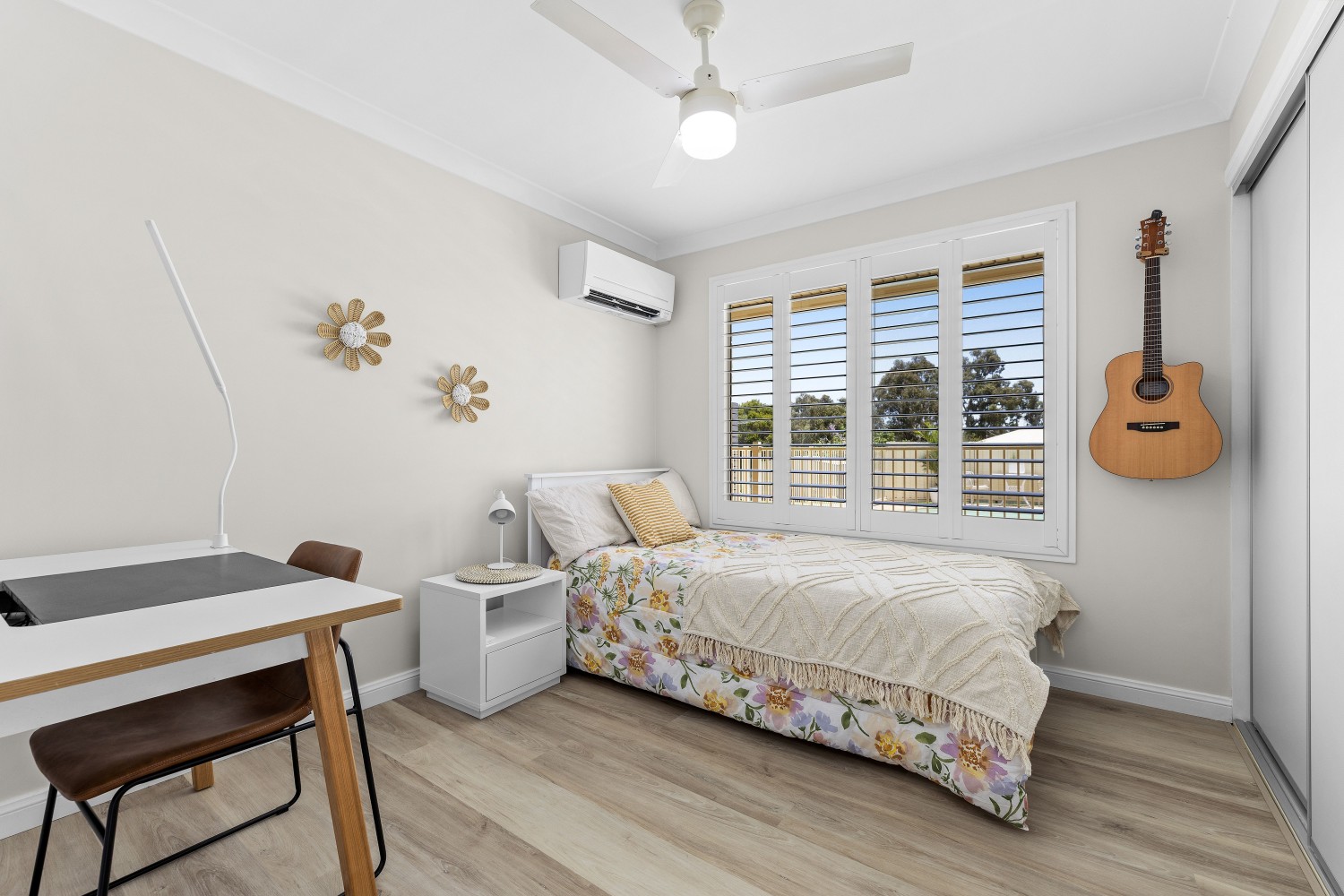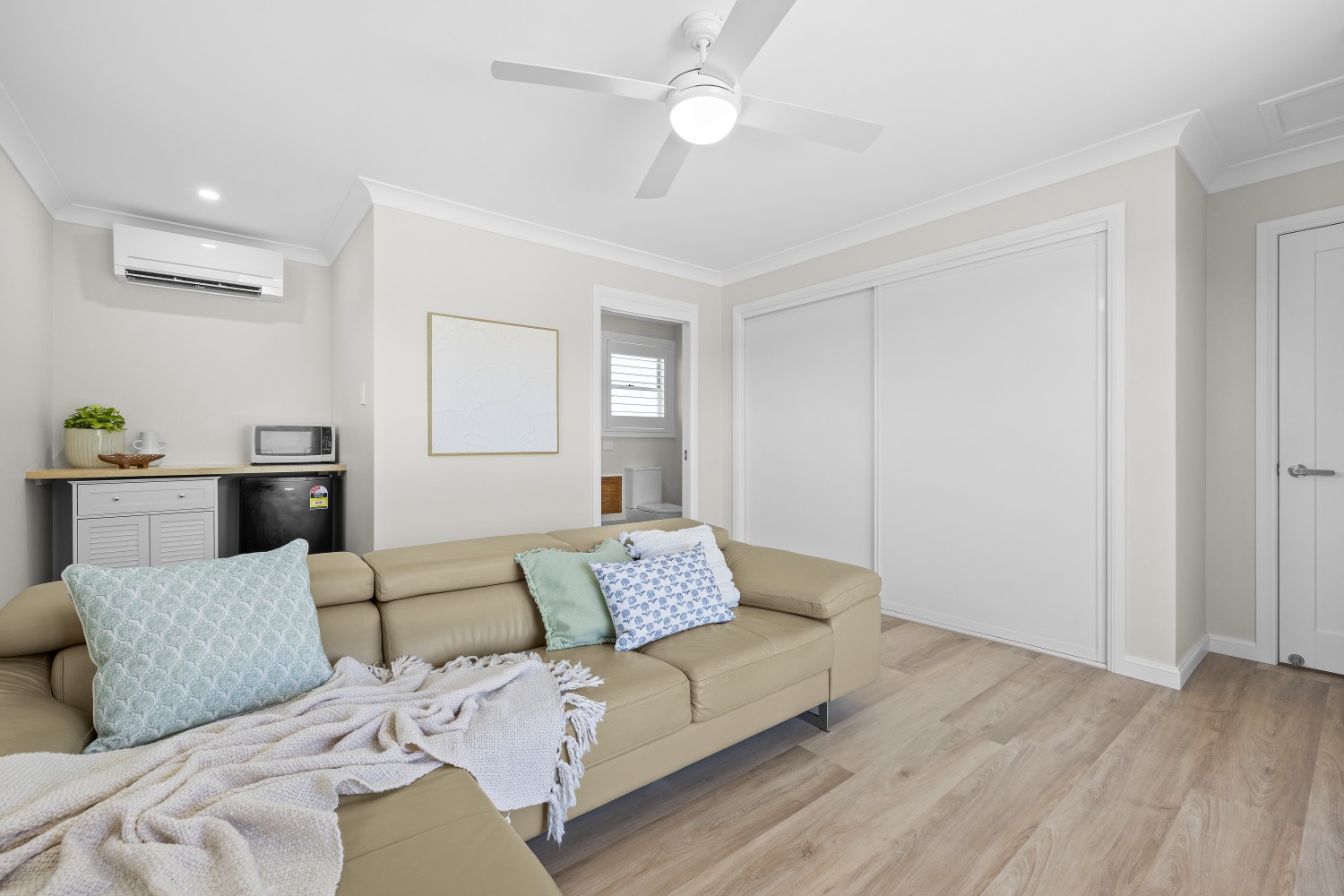 With a beautiful spotted gum deck at the entrance and hybrid flooring, this home boasts five bedrooms plus a study, all of which feature elegant plantation shutters, Mucheln door handles, built in wardrobe storage, and reverse cycle air-conditioning plus a ceiling fan. The master bedroom has ensuite, spacious walk-in wardrobe, and a broad bay window that enjoys views across a tranquil rural vista. A studio with its own ensuite and separate external entrance offers dual living or home-based business potential, and the zoning of this property - Low Density Residential - allows scope for an additional granny flat or for subdivision (subject to Council approval).