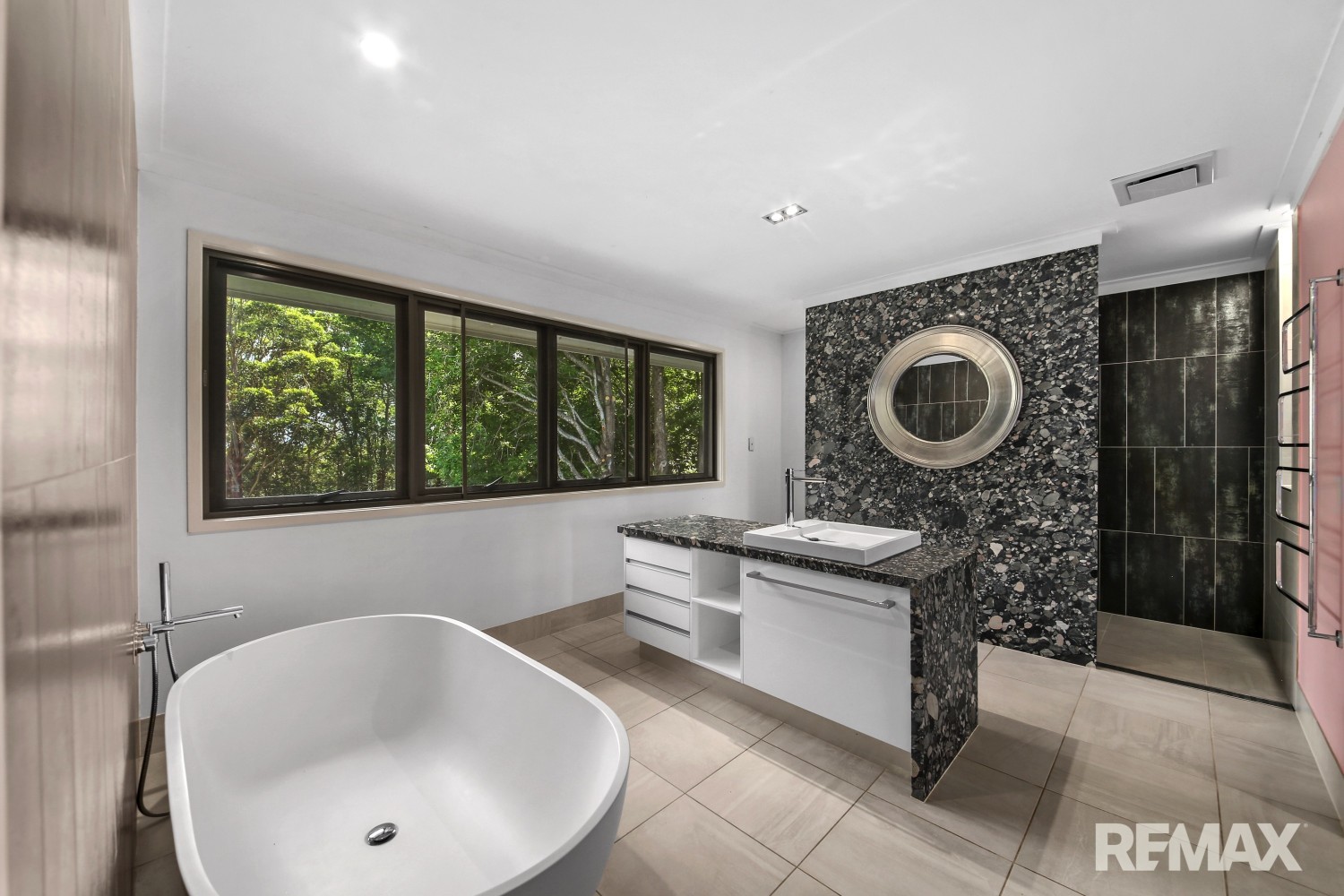 • The master bedroom is breathtaking! Extremely spacious yet feels so relaxing. It fronts onto a North facing verandah and features an oversized ensuite with stone benchtops, an island wash area, beautiful stone, no glass shower, bath, private toilet, and walk around robe that is the size of a large bedroom on its own.