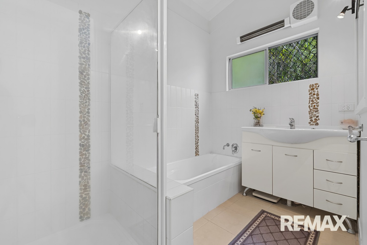The home itself is set back from the road in an elevated position with attractive street appeal; and across 385 square metres (approximately) it comprises four bedrooms, freshly-painted bathroom with separate shower and bathtub, second toilet, office, separate living areas, custom-built modern kitchen with quality appliances, north-facing covered timber deck off master bedroom, covered patio off living/dining, separate laundry, and triple carport.