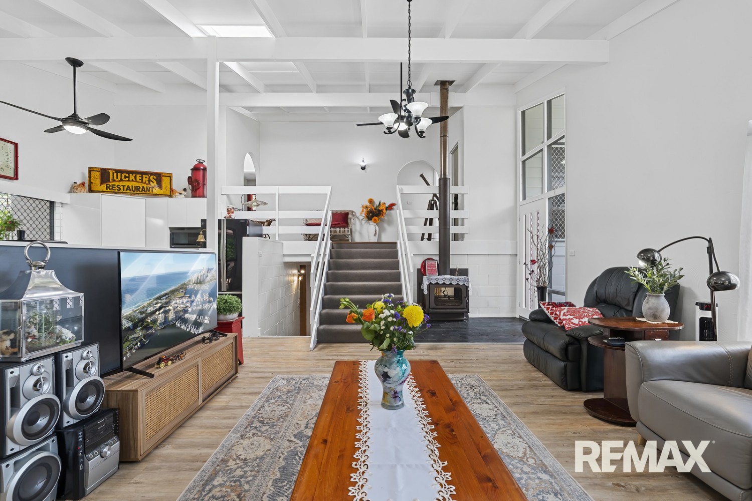 Raked ceilings and brush box hardwood floors on upper level infuse the home with character, warmth and a heightened sense of light and space; other notable features of the house include split system air-conditioning, ceiling fans, skylights, fireplace, security screens, soft close cabinetry in kitchen, 4 x security cameras, slate flooring in games room, and an exceptionally versatile floor plan that could facilitate dual living or home business/salon options.