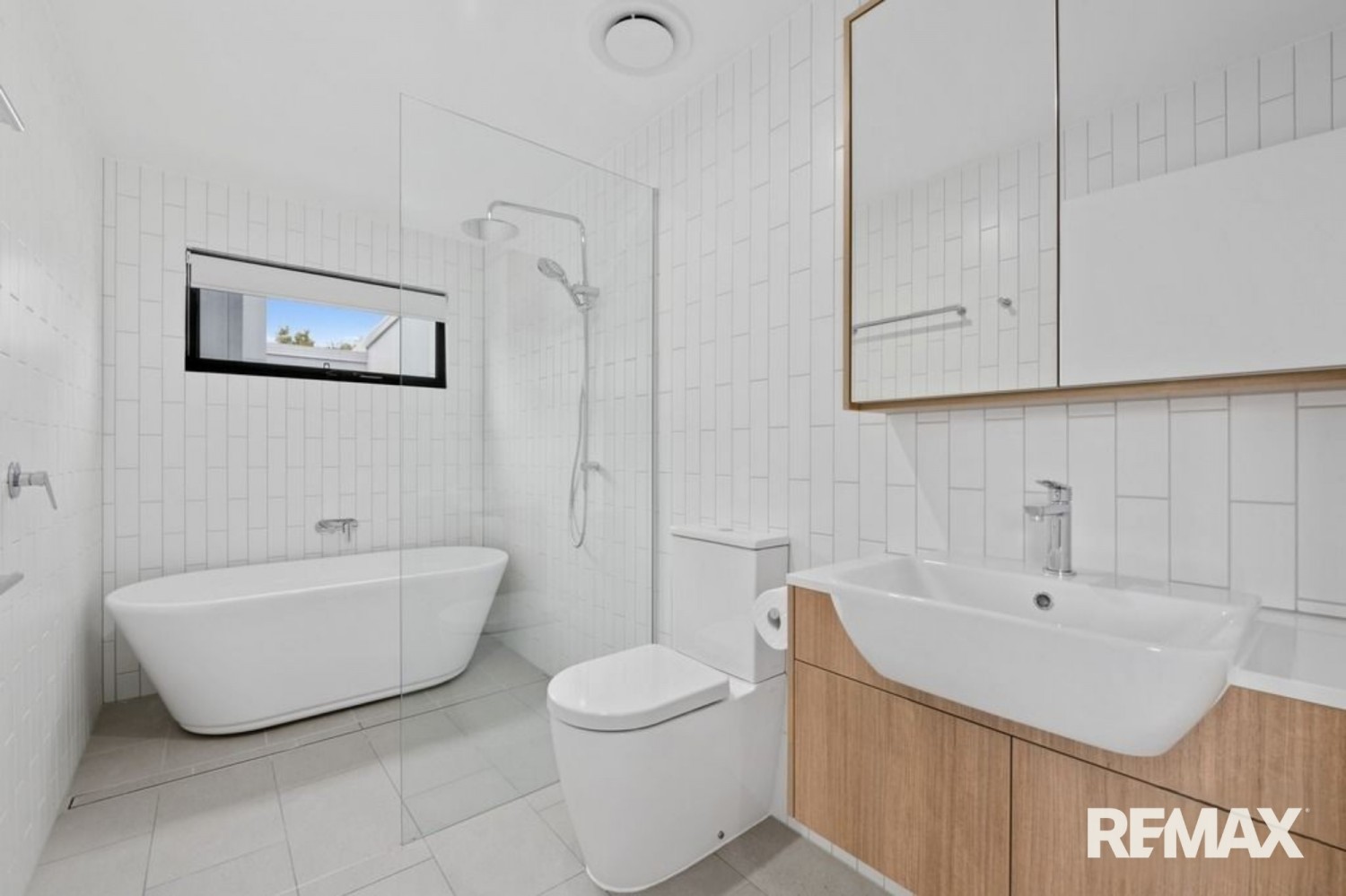 Upstairs, both bedrooms are generously sized, with the master suite offering a beautiful northern aspect, walk-in robe, and private fully-tiled ensuite with twin basins. A dedicated home office nook and an additional multi-purpose room add flexibility for work, study, or relaxation. The central bathroom is equally impressive, complete with quality finishes and a freestanding bathtub.