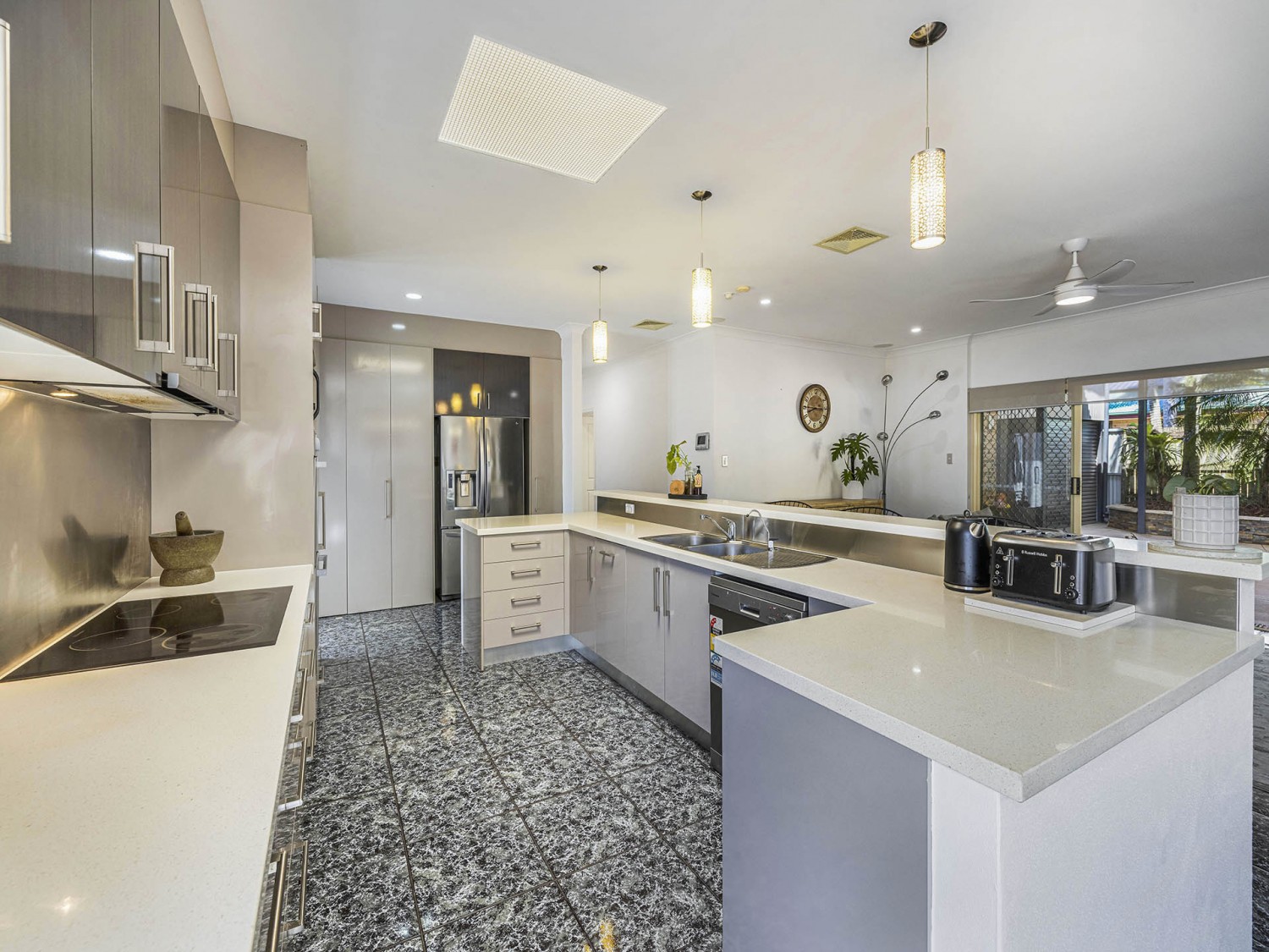 - Stylish galley kitchen with stone benchtops & 900mm induction cooktop