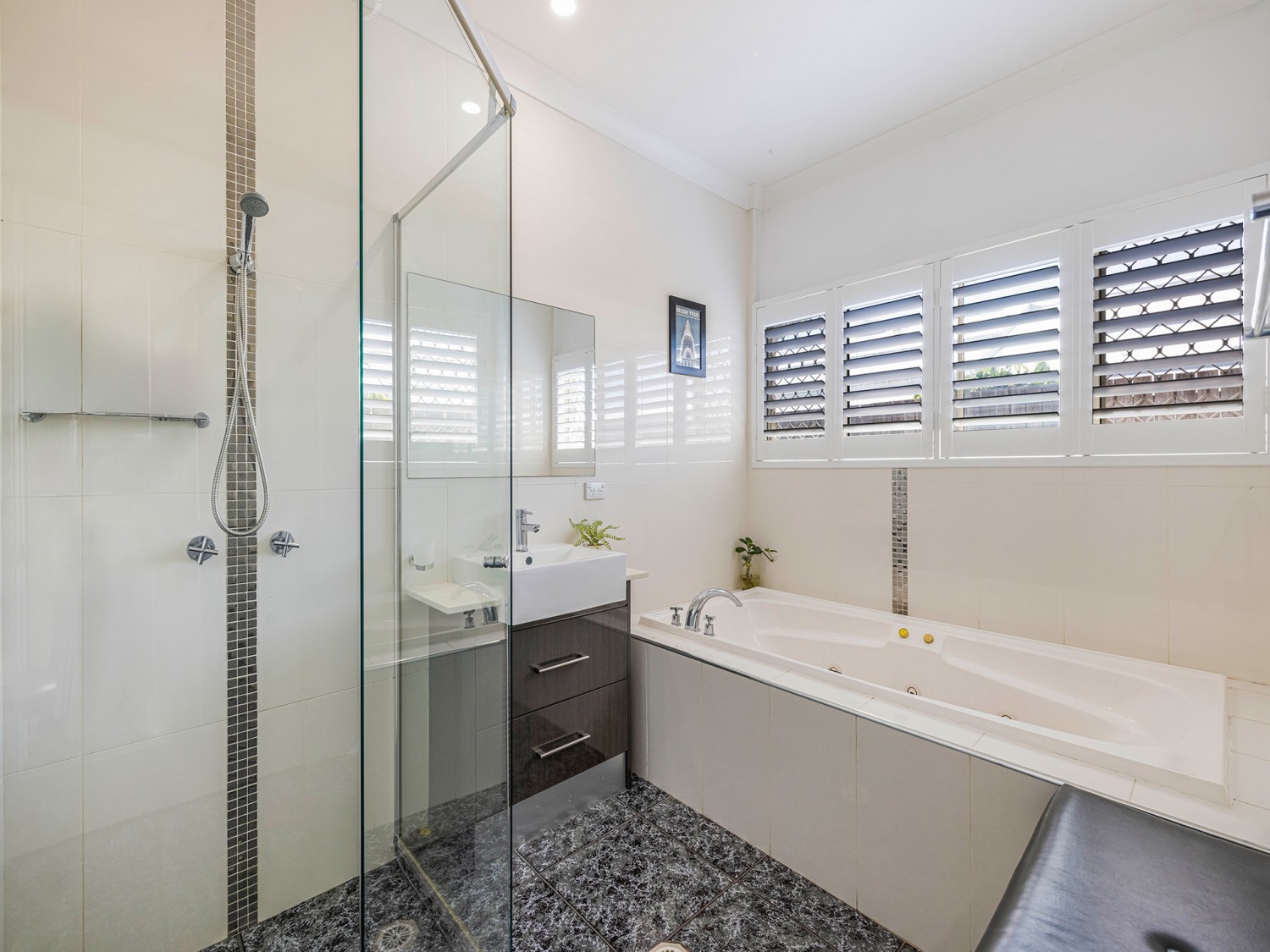 - Floor-to-ceiling tiled bathrooms, master with ensuite