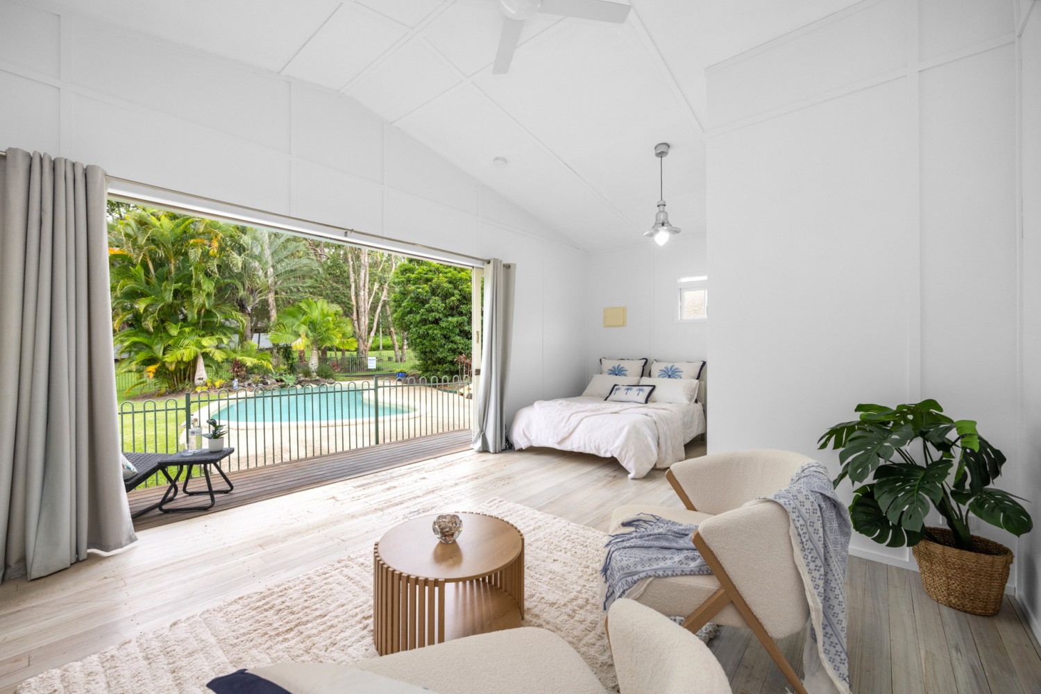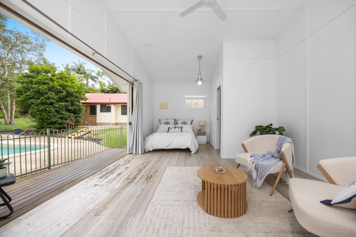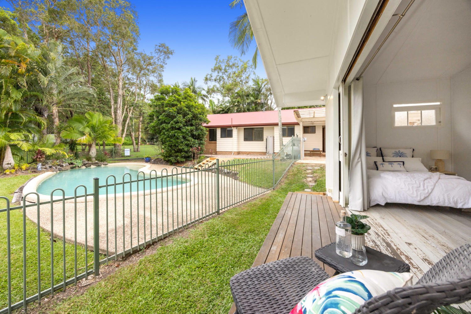 Separate from the main residence is a self-contained studio, offering spacious open plan living, a kitchenette and bathroom. With its own veranda overlooking the pool, this tranquil space is ideal for teenagers, guests or extended family. It also lends itself perfectly to a home-based business, permanent rental or potential Airbnb income.