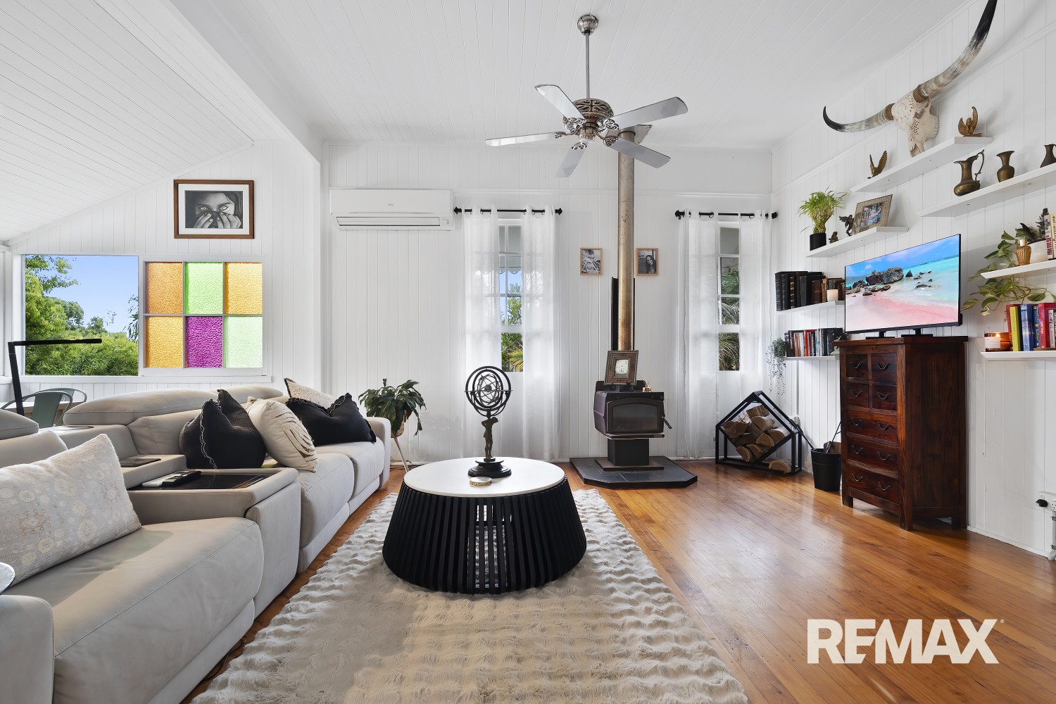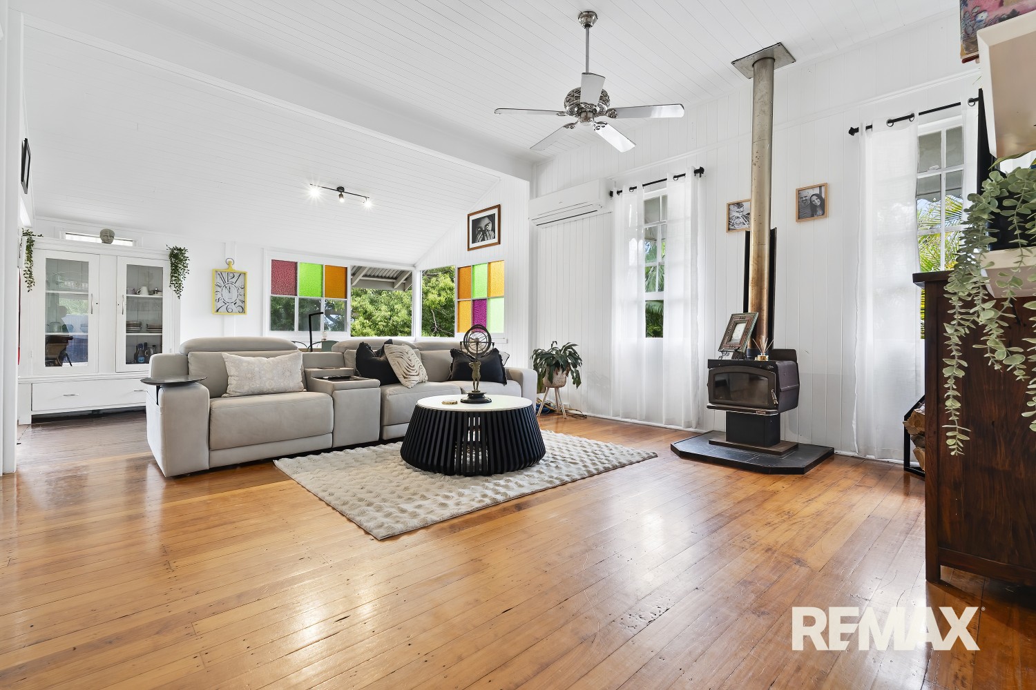 From the moment you arrive, the home showcases the timeless features synonymous with classic Queenslander architecture, polished hardwood floors, soaring 12-foot ceilings, VJ panelling, stained glass windows, decorative fretwork, casement windows, French doors, and a cosy wood-burner fireplace. These beautiful elements combine to create warmth, elegance, and authentic period charm.