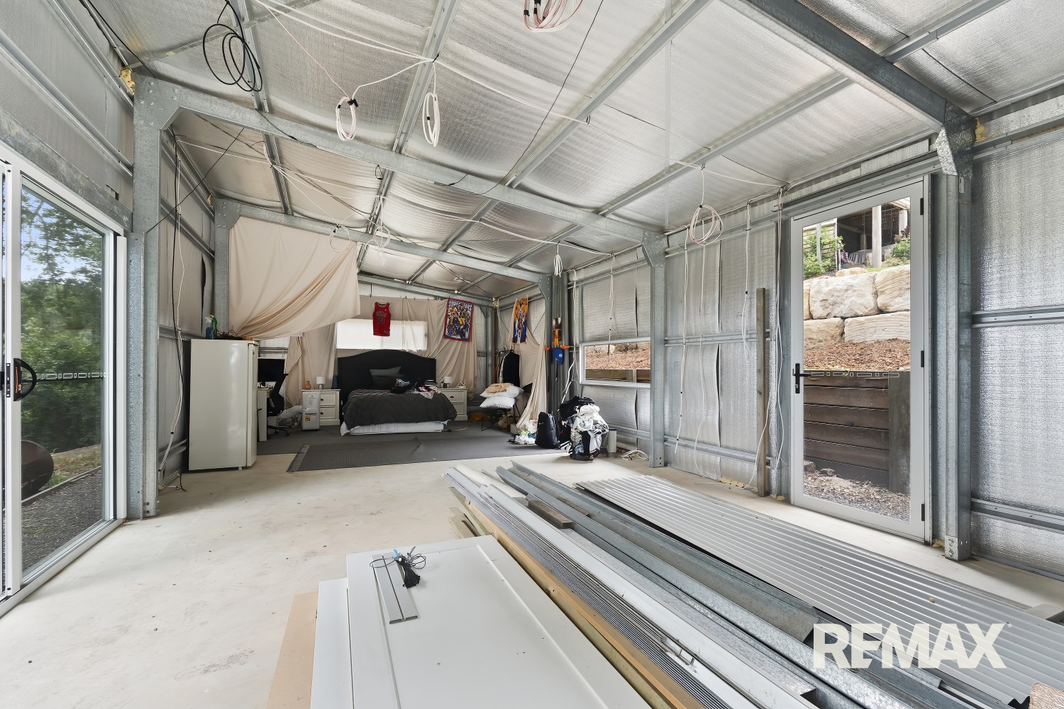 • 12m x 5m shed partially converted to secondary dwelling (STCA)